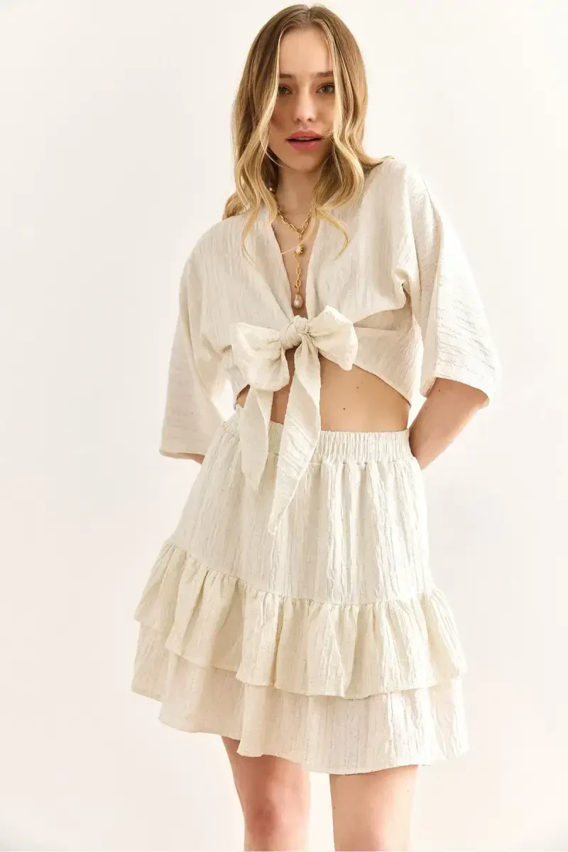 Женский экрю топ и юбка комплект TKM-19000390