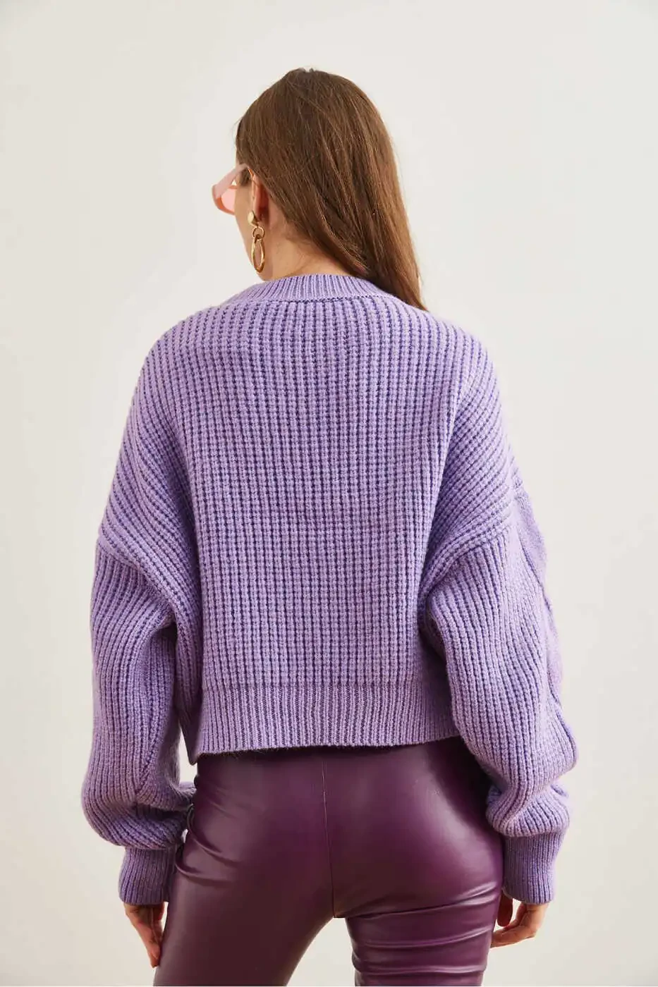 Женский вязаный свитер сиреневого цвета с толстой косой вязкой | 100% акрил | Trendyol