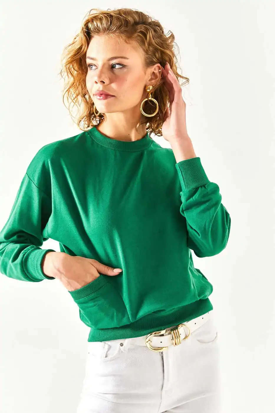 **Женский изумрудно-зеленый свитшот с накладными карманами и мягкой текстурой**Встречайте стильную и комфортную женскую толстовку изумрудно-зеленого цвета с карманами и мягкой текстурой. Она сочетает в себе моду и уют, обеспечивая комфорт и стиль на весь день.**Комфорт и стиль**Ткань из волокон обеспечивает воздухопроницаемость и длительный комфорт. Прямой крой подходит для всех типов фигуры, создавая привлекательный силуэт. Круглый вырез добавляет нотку современной простоты, не жертвуя уютом.**Практичность и функциональность**Удобные карманы позволяют держать под рукой все необходимое, делая эту толстовку не только стильной, но и практичной. Ее базовый силуэт легко сочетается с другими элементами гардероба, создавая универсальную вещь.**Для всех возрастов**Эта толстовка подходит для всех возрастов, охватывая широкий круг покупателей. Она идеально подходит для повседневной носки и обеспечит идеальную защиту в переходные сезоны.**Качественные материалы**Материал из смеси хлопка и полиэстера обеспечивает воздухопроницаемость и прочность. Стандартный рукав не ограничивает свободу движений, обеспечивая комфорт в течение всего дня.**Дополнительные характеристики*** Код товара: SWT-19000616* Лимит заказа: 10 шт.* Бесплатный возврат: в течение 15 дней* Отправитель: Trendyol