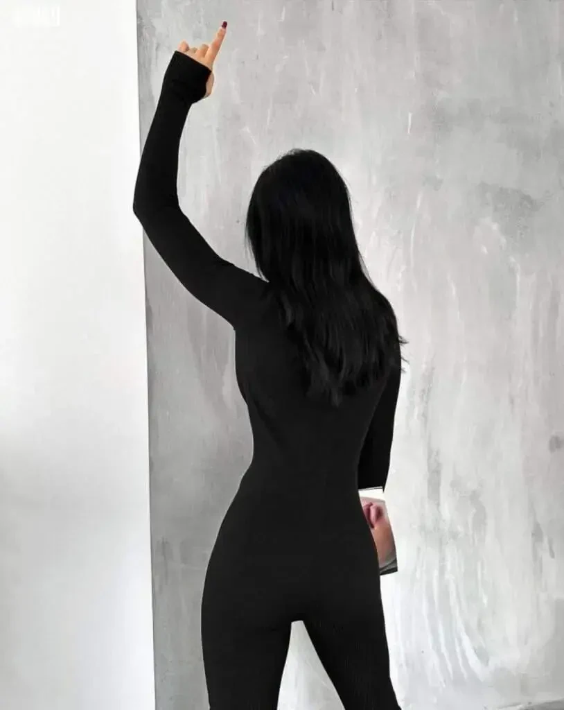 Женский комбинезон с длинными рукавами, V-образным вырезом и отверстиями для пальцев, сочетающий в себе элегантность и комфорт, станет незаменимой вещью в вашем гардеробе. Мягкое прикосновение тонкой ткани в рубчик к вашей коже обеспечивает комфорт в течение всего дня, а облегающий крой подчеркивает ваш элегантный силуэт. V-образный вырез изящно подчеркивает вашу зону декольте, а длинные рукава идеально подходят для прохладной погоды. Одной из самых примечательных особенностей этого комбинезона являются детали с отверстиями для пальцев. Эта деталь не только придает вашему образу особый вид, но и помогает вашим рукам выглядеть длиннее и изящнее. Благодаря отверстиям для пальцев ваши руки не задираются, и они не ограничивают вашу свободу движений. Этот комбинезон можно носить как в повседневной жизни, так и на особые случаи, и он легко сочетается с различными комбинациями. Вы можете создать спортивный образ с кроссовками или завершить свой образ каблуками. Вы также можете персонализировать свой стиль, выбрав аксессуары. Например, вы можете подчеркнуть свою талию широким поясом или подчеркнуть декольте стильным ожерельем. Женский комбинезон с длинными рукавами, V-образным вырезом и отверстиями для пальцев - это не только стильный, но и практичный выбор. Он легко надевается и снимается, а его устойчивая к складкам структура делает его незаменимым предметом багажа в путешествиях. Этот комбинезон, который спасет ваш гардероб, также привлекает внимание своей возможностью ношения в любое время года. Вы можете носить его самостоятельно весной и осенью, а зимой комбинировать его с курткой или кардиганом, чтобы согреться и сохранить свой стиль. Этот комбинезон имеет дизайн, который понравится современным и стильным женщинам. Это предмет одежды, который будет сопровождать вас как в повседневной жизни, так и в особые моменты, и поможет вам чувствовать себя хорошо. Благодаря качественным материалам и тщательному изготовлению, это вневременная инвестиция, которой вы сможете наслаждаться долгие годы. Это универсальный и стильный вариант, который обязательно должен быть в вашем шкафу.