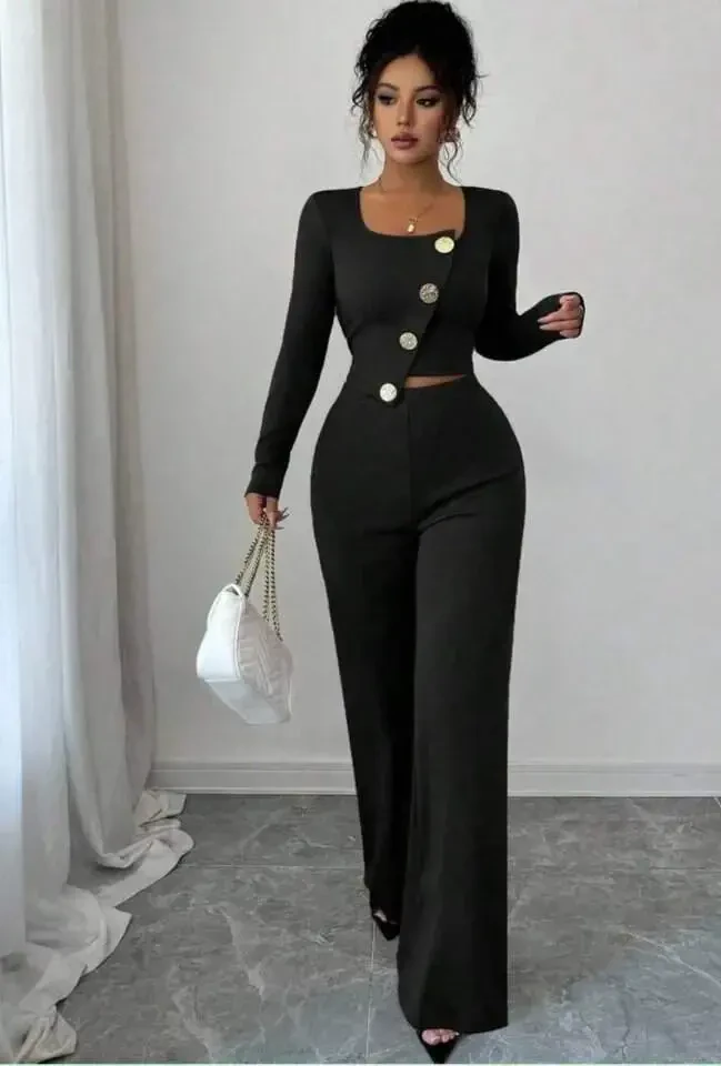 Этот эксклюзивный комплект из двух частей, сочетающий в себе элегантность и комфорт, позволит вам привлекать внимание как в повседневной жизни, так и на светских мероприятиях. Современный и элегантный крой блузки с квадратным вырезом дополнен асимметричной застежкой на пуговицы, что позволяет создать неповторимый образ. Дизайн с длинными рукавами гарантирует, что вы не пожертвуете своей элегантностью даже в прохладную погоду. Удобный крой блузки обеспечивает комфорт в течение всего дня, а брюки с высокой талией идеально подчеркивают фигуру. Современный крой брюк делает ноги длиннее и стройнее, а высокая талия подчеркивает талию и помогает добиться более подтянутого внешнего вида. Сочетающиеся цвета комплекта из двух частей позволяют создавать любые комбинации и выражать свой стиль с помощью различных аксессуаров. Наденьте каблуки и отправляйтесь на элегантное мероприятие или превратите его в повседневный образ с помощью кроссовок - этот комплект из двух частей позволит вам говорить о своем стиле в любой обстановке. Качество ткани и внимание к деталям пошива обеспечивают длительный срок службы, а легко гладящаяся ткань поможет сэкономить время. Комплект из двух частей: женская блузка с длинными рукавами и квадратным вырезом, асимметричной застежкой на пуговицы и брюки с высокой талией из новой коллекции - идеальный выбор для женщин, которые хотят быть одновременно стильными и удобными. Обновите свой гардероб с помощью этого эксклюзивного дизайна и выделитесь из толпы в любой обстановке! Этот комплект из двух частей - отличная возможность выразить свой стиль и создать уникальные комбинации. Этот комплект, который позволит вам чувствовать себя хорошо как на работе, так и на светских мероприятиях, станет выбором для тех, кто ищет элегантность и комфорт в одном лице. Облегающий крой обеспечивает стильный внешний вид, не ограничивая свободу движений. Этот комплект из двух частей, который можно носить в любое время года, станет одной из самых любимых вещей в вашем гардеробе. Асимметричные детали с пуговицами придают дизайну блузки современный вид, а элегантный крой брюк с высокой талией подчеркивает фигуру. Этот комплект был разработан, чтобы удовлетворить ожидания женщин, которые хотят быть одновременно удобными и стильными. Откройте для себя этот комплект из двух частей, который станет незаменимым в вашем гардеробе, и поднимите свой стиль на новый уровень!