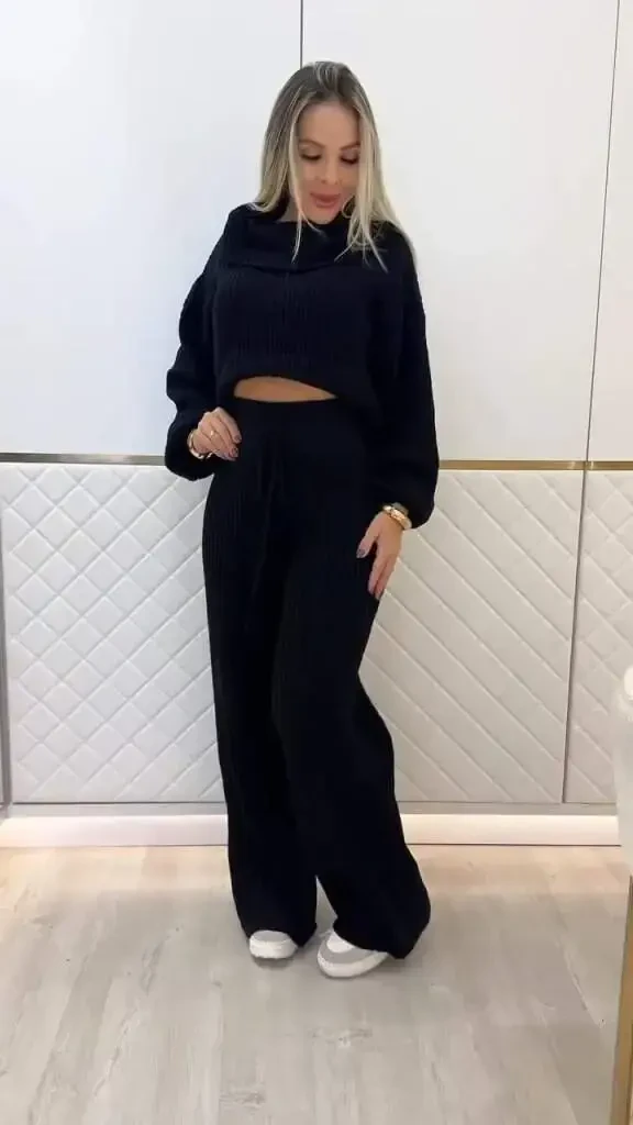 Женский комплект из короткой трикотажной блузки с длинными рукавами и воротником-стойкой и брюк – это современный вариант, сочетающий в себе элегантность и комфорт. Этот комплект идеально подходит как для повседневной носки, так и для особых случаев. Мягкая текстура трикотажной ткани обеспечивает комфорт в течение всего дня, а воротник-стойка и короткий крой блузки создают современный вид. Дизайн с брюками позволяет вам выглядеть стильно, не ограничивая свободу движений. Размер M/38 на модели дает представление об общем крое изделия, а различные варианты размеров предлагают альтернативу для любого типа фигуры. Размеры модели (рост: 165 см, вес: 55 кг, грудь: 90 см, талия: 72 см, бедра: 100 см) позволяют получить представление о том, как изделие будет выглядеть на вас. Этот комплект станет одним из незаменимых предметов вашего гардероба. Благодаря простоте комбинирования, его можно дополнить различными аксессуарами и обувью. Например, вы можете создать более повседневный образ с кроссовками или более элегантный образ с туфлями на каблуках. Простой и стильный дизайн комплекта позволяет ему адаптироваться к любой обстановке. Вы можете смело носить его в офисе, на встречах с друзьями или на особых мероприятиях. Высококачественный трикотажный материал обеспечивает долговечность, а простота в уходе делает его практичным вариантом. Рекомендуется соблюдать инструкции по стирке, указанные на этикетке, чтобы сохранить цвет и текстуру изделия. Женский комплект из короткой трикотажной блузки с длинными рукавами и воротником-стойкой и брюк – это идеальный выбор для женщин, которые хотят выглядеть стильно и не жертвовать комфортом. Этот комплект – не просто одежда, а образ жизни. Этот комплект, который можно легко сочетать с другими предметами вашего гардероба, можно носить в разные сезоны. Его можно носить отдельно весной и осенью, а зимой можно сочетать с курткой или пальто, чтобы согреться и сохранить свой стиль. Женский комплект из короткой трикотажной блузки с длинными рукавами и воротником-стойкой и брюк – это вещь вне времени, которая будет сопровождать вас в любой момент. Не упустите этот комплект, который сочетает в себе элегантность, комфорт и простоту использования.