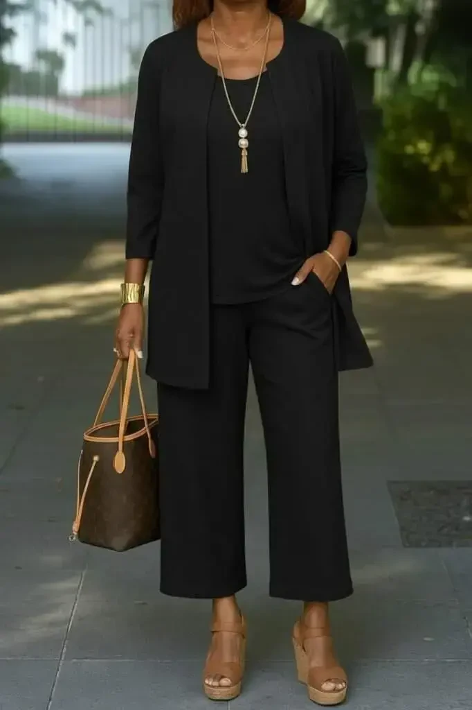 Kadın Uzun Kollu Önü Açık Modal Ceket, Kolsuz Viskon İki İplik Bluz ve Pantolon olmak üzere üç parçadan oluşan şık ve konforlu takımımız, gardırobunuzun vazgeçilmezi olmaya aday. Bu özel tasarım, hem rahatlığı hem de modern görünümü bir araya getirerek her ortamda stilinizi yansıtmanızı sağlar. Günlük kullanım, özel davetler veya şık bir akşam yemeği için mükemmel bir seçimdir. Modelin üzerindeki M/38 beden, kıvrımlarınızı zarifçe ortaya çıkarırken, hareket özgürlüğünüzü kısıtlamaz.Uzun kollu, önü açık modal ceket, hafif ve yumuşak dokusuyla gün boyu üzerinizde yokmuş hissi yaratır. Ceket, bluz ve pantolon kombinasyonunu tamamlayarak size farklı kullanım olanakları sunar. Serin havalarda sizi sıcak tutarken, sıcak havalarda da teninizin nefes almasını sağlar. Ceketin önü açık tasarımı, şıklığınıza zarif bir dokunuş katar ve farklı aksesuarlarla kolayca kombinlenebilir.Kolsuz viskon iki iplik bluz, yumuşak dokusu ve rahat kesimiyle gün boyu konfor sunar. Viskonun doğal yapısı sayesinde terlemeyi önler ve cildinizin rahatça nefes almasını sağlar. Bluzun kolsuz tasarımı, hareket özgürlüğünüzü kısıtlamaz ve farklı kombinasyonlar için ideal bir temel parça oluşturur. Bluzu, ceketle birlikte takım olarak kullanabileceğiniz gibi, farklı etek veya pantolonlarla da kombinleyebilirsiniz.Pantolon, rahat kesimi ve elastik bel bandıyla gün boyu konfor sunar. İki iplik kumaşın yumuşak dokusu, cildinize nazikçe dokunur ve rahat bir kullanım deneyimi sağlar. Pantolonun modern kesimi, vücut hatlarınızı güzel bir şekilde vurgular ve şık bir siluet oluşturur. Pantolonu, bluz ve ceketle birlikte takım olarak kullanabileceğiniz gibi, farklı üstlerle de kombinleyebilirsiniz.Bu üçlü takım, yüksek kaliteli malzemelerden üretilmiştir ve uzun ömürlüdür. Modal ceket, viskon bluz ve iki iplik pantolonun bir araya gelmesiyle oluşan bu takım, hem rahatlığı hem de şıklığı bir arada sunar. Gardırobunuzun temel parçalarından biri olacak bu takım, size her zaman şık ve bakımlı bir görünüm kazandıracaktır. Kendi bedeninize uygun olanı seçerek, bu eşsiz takımın keyfini çıkarın. Unutmayın, stiliniz sizin kimliğinizdir ve bu takım, stilinizi en iyi şekilde yansıtmanıza yardımcı olacaktır.