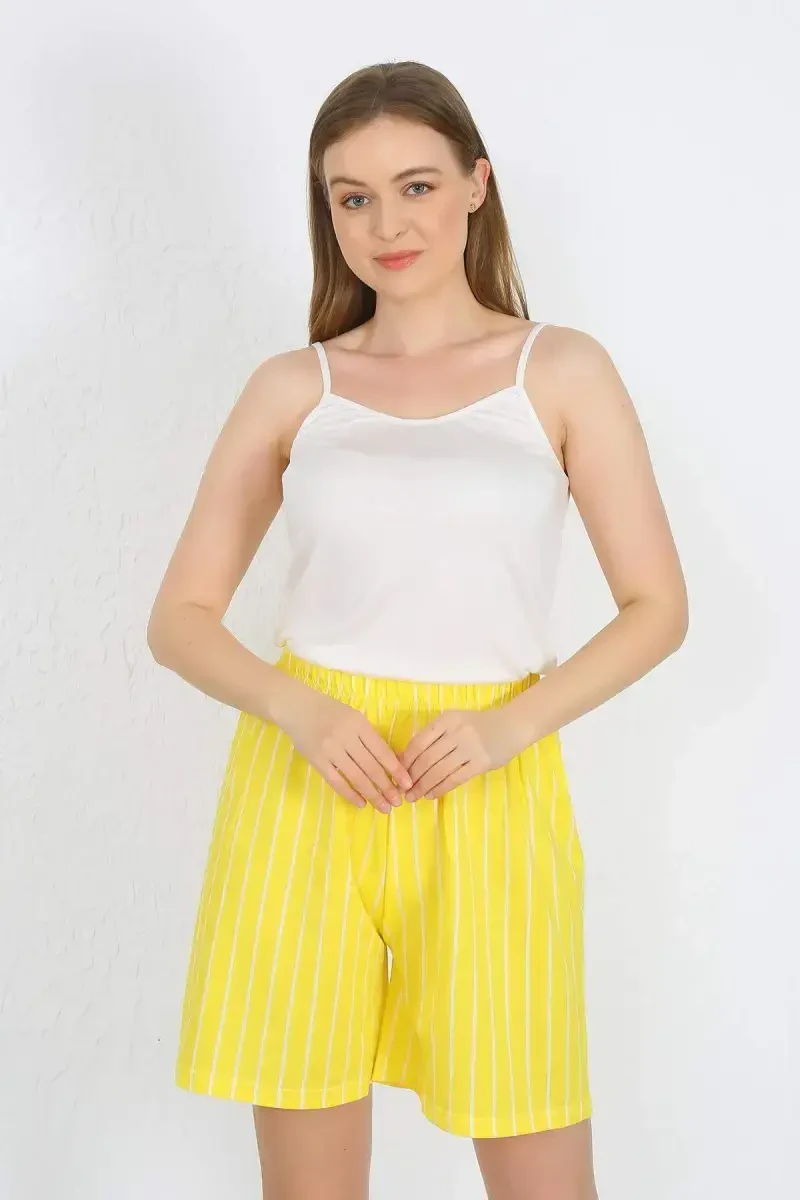 **Женский комплект с шортами из хлопкового трикотажа с подтяжками, желтый 3620**