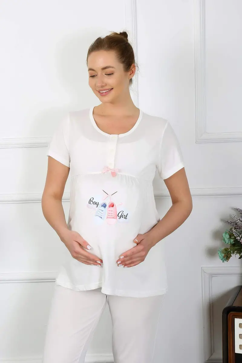 Знакомьтесь с женским коротким пижамным комплектом для беременных и кормящих мам цвета экрю 45210, где комфорт и стиль сливаются воедино! Этот специальный пижамный комплект, изготовленный из 100% хлопка, будет сопровождать вас в самые приятные моменты вашей беременности и послеродового периода, он разработан с учетом деликатности вашей кожи. Его мягкая текстура и дышащая структура обеспечат вам комфорт в течение всего дня, этот пижамный комплект идеально подходит как для беременных, так и для кормящих мам. Успокаивающий и умиротворяющий эффект цвета экрю поможет вам пройти этот период без стресса и в комфорте. Благодаря превосходной посадке и стильному дизайну, этот пижамный комплект позволит вам чувствовать себя особенной даже дома, он сочетает в себе стиль и комфорт. Благодаря преимуществу доставки в течение 24 часов ваш заказ быстро дойдет до вас, и вы сможете насладиться комфортом уже сегодня. Модель на фото демонстрирует размер М, вы также можете выбрать подходящий вам размер в таблице размеров и добавить этот комфортный и стильный пижамный комплект в свою корзину. Он специально разработан, чтобы помочь вам чувствовать себя лучше во время беременности и послеродового периода.