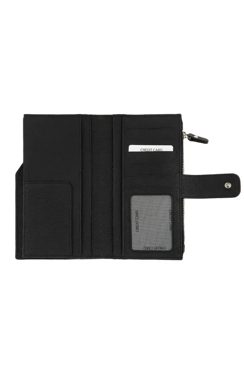 Женский кошелек из натуральной кожи с застежкой на кнопку, множеством отделений для карт, отделением для документов и молнией, черный