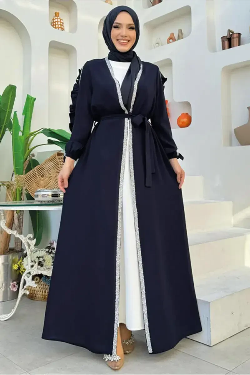 Женский темно-синий комплект абайи с платьем и каменной отделкой T 4848-LACIVERT — незаменимая вещь в гардеробе современной и элегантной женщины. Абайя выделяется своим стильным дизайном и удобным кроем, а внутреннее платье — универсальный вариант, который можно носить как отдельно, так и с абайей. Глубина темно-синего цвета и сияние каменной отделки делают этот комплект особенным. Идеально подходит для создания простого шикарного образа на каждый день или для того, чтобы произвести впечатление на особых мероприятиях. Абайя нежно облегает фигуру, подчеркивая элегантность и подходит для любого размера. Платье создает приятный силуэт под абайей, а также имеет легкую и удобную структуру, которую можно носить отдельно в летние месяцы. Качество ткани обеспечивает длительный срок службы и простоту в уходе. Этот комплект — идеальный выбор для женщин, которые придерживаются как современного, так и традиционного стиля одежды. С этим элегантным комплектом абайи, который станет незаменимым в вашем гардеробе, вы будете чувствовать себя особенной в любой обстановке.