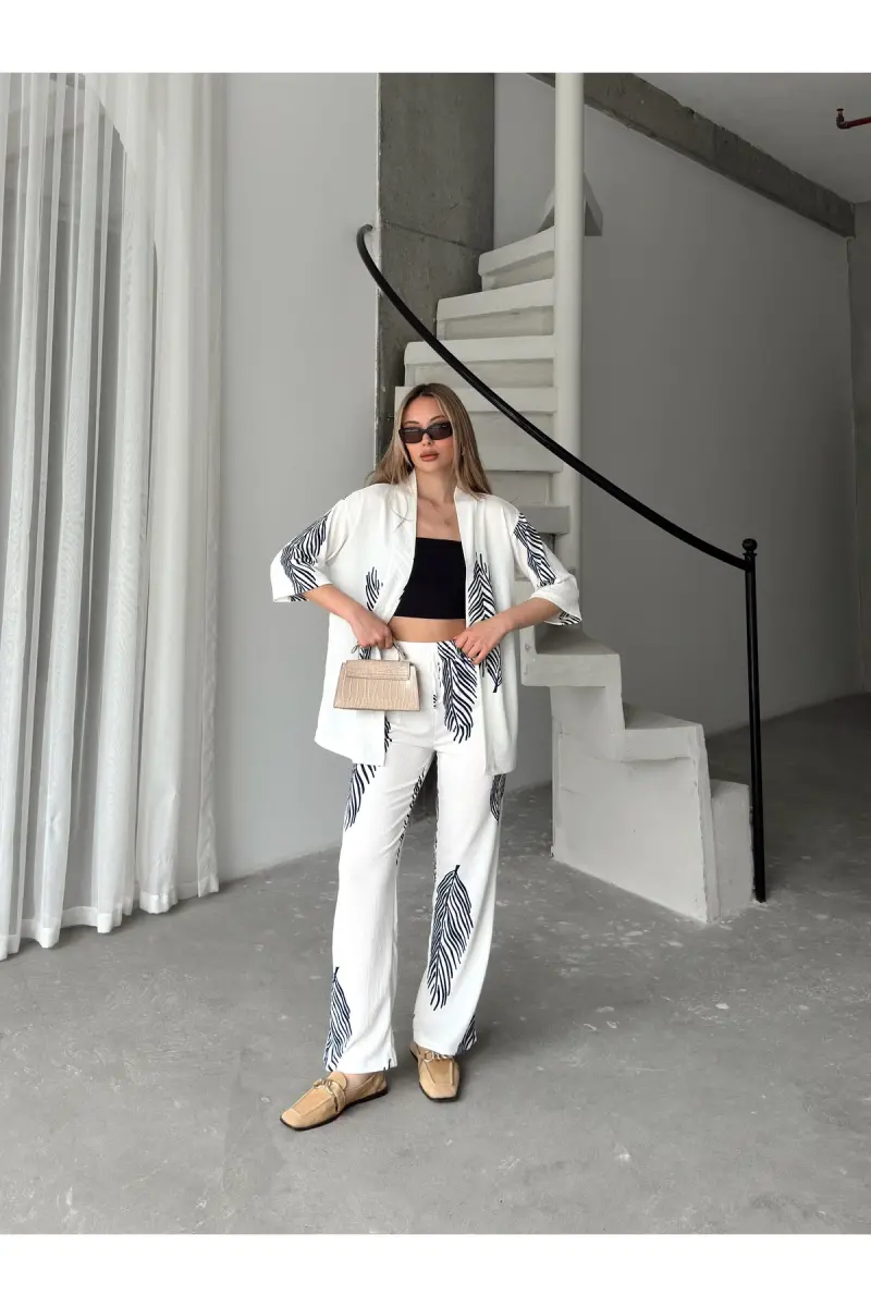 Женский костюм в стиле кимоно свободного кроя - Черный - это предмет гардероба, который обязательно должна иметь современная женщина, сочетающий в себе элегантность и комфорт. Этот специальный дизайн - идеальный выбор как для повседневного использования, так и для особых случаев. Этот костюм, состоящий из верха в стиле кимоно и низа свободного кроя, позволяет вам выглядеть стильно, не ограничивая свободу движений. Этот костюм, несущий на себе благородство и элегантность черного цвета, легко сочетается с различными аксессуарами и позволяет вам привлекать внимание в любой обстановке.**Описание продукта**Женский костюм в стиле кимоно свободного кроя - Черный - это стильный и удобный вариант, который адаптируется к образу жизни современной женщины. Этот костюм, который вы можете выбрать как для комфортного дня дома, так и для выхода с друзьями, поможет вам отразить свой стиль в любой ситуации. Широкие рукава и драпированный крой верха в стиле кимоно обеспечивают как комфорт, так и элегантный внешний вид. Свободный крой низа обеспечивает свободу движений в течение всего дня. Классический и вневременной вид черного цвета делает костюм пригодным для ношения в любой обстановке. Вы можете создать свой собственный стиль, легко сочетая его с аксессуарами и обувью разных цветов. Независимо от того, дополните ли вы его кроссовками для спортивного образа или туфлями на каблуках для элегантного мероприятия, этот костюм всегда будет привлекать внимание. Кроме того, благодаря качественной ткани он обеспечивает длительный срок службы и легко стирается и гладится. Женский костюм в стиле кимоно свободного кроя - Черный - это не просто одежда, это образ жизни. Этот костюм будет сопровождать вас каждый раз, когда вы захотите почувствовать себя хорошо и выглядеть стильно. Откройте для себя этот костюм, который станет незаменимой частью вашего гардероба, прямо сейчас и вдохните новую жизнь в свой стиль. Благодаря своей структуре, которую можно носить в любое время года, он станет вашим любимым нарядом круглый год. Он предлагает современную и непринужденную элегантность, которая отражает вас как в повседневной жизни, так и в особых случаях. Почувствуйте себя особенной в женском костюме в стиле кимоно свободного кроя - Черный.**Особенности продукта*** Свободный крой* Верх в стиле кимоно* Черный цвет* Костюм из верха и низа* Верх с широкими рукавами* Драпированный крой* Легко комбинируется* Подходит для ношения в любое время года* Качественная ткань* Долговечный* Обеспечивает свободу движений* Стильный и удобный* Подходит для повседневных и особых случаев* Совместим с различными аксессуарами* Легкий уход**Дополнительная информация**Состав ткани и инструкции по стирке указаны на этикетке изделия. Пожалуйста, соблюдайте инструкции по уходу. На манекене надет размер S. Цвета изделия могут отличаться из-за разницы в освещении при студийной съемке. Наши продукты отправляются после проверки качества.
