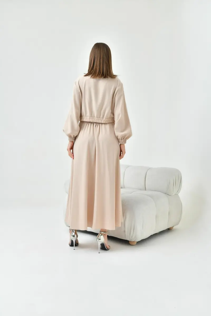 Создайте потрясающий образ с помощью Женского костюма с юбкой из крепа с блестками Бежевый 30839, который сочетает в себе элегантность и стиль. Изготовленный из мягкой и струящейся креповой ткани, этот костюм излучает утонченность, подходящую для любого случая. Блестящие детали с блестками добавляют вашему наряду современный штрих, выделяя вас из толпы.