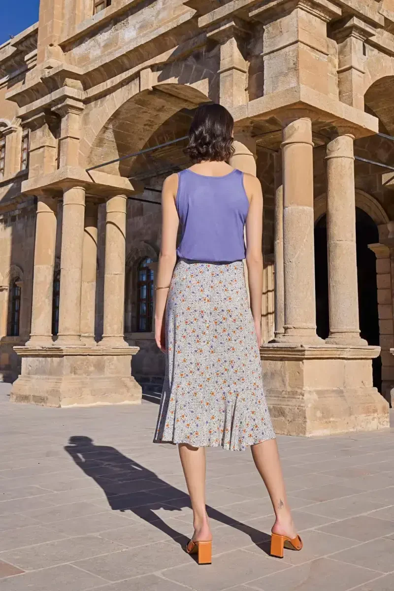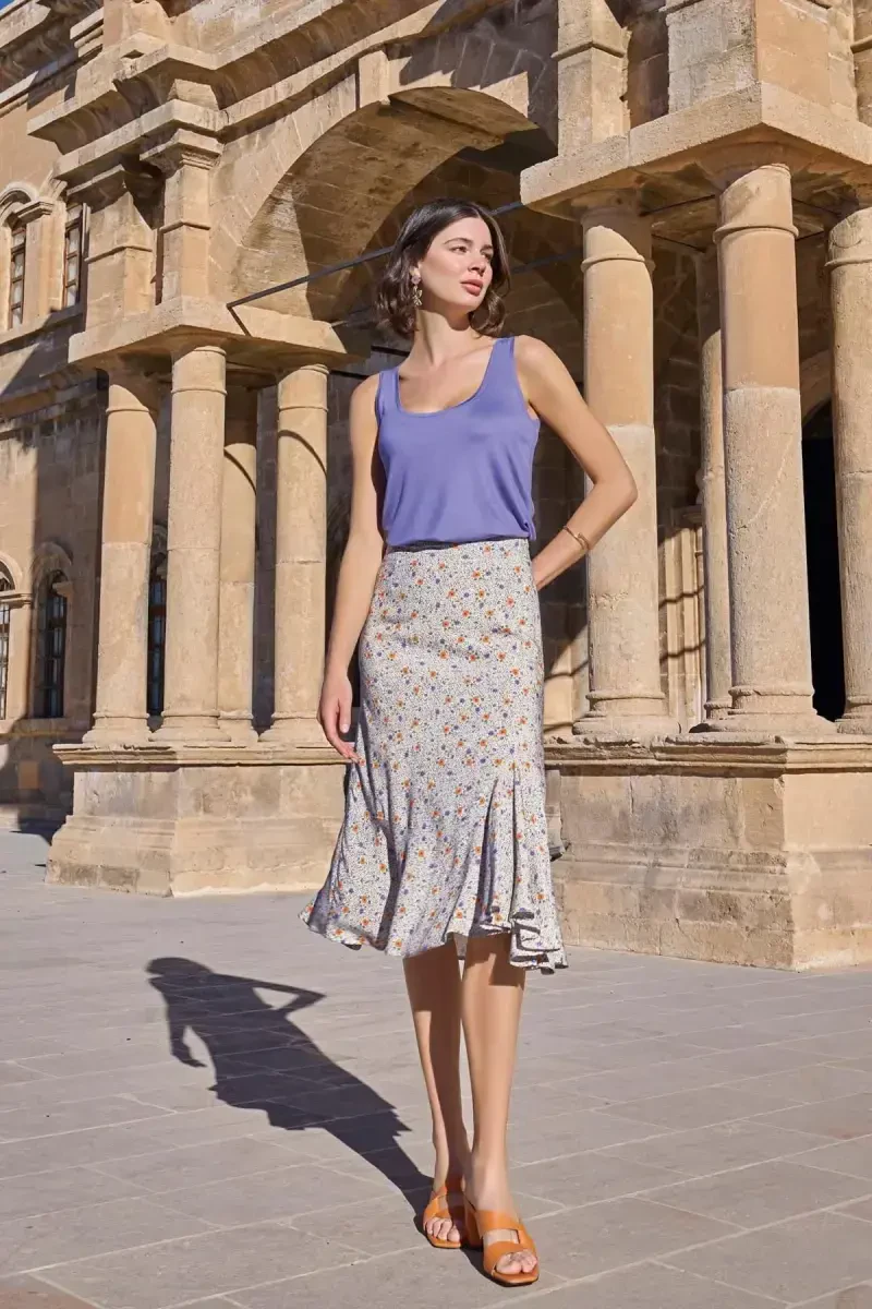 Женский костюм-юбка с толстыми бретелями и цветочным принтом Monamise 23071 - Стильный и комфортный летний комплект