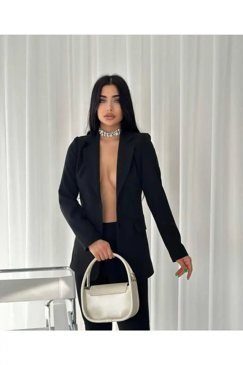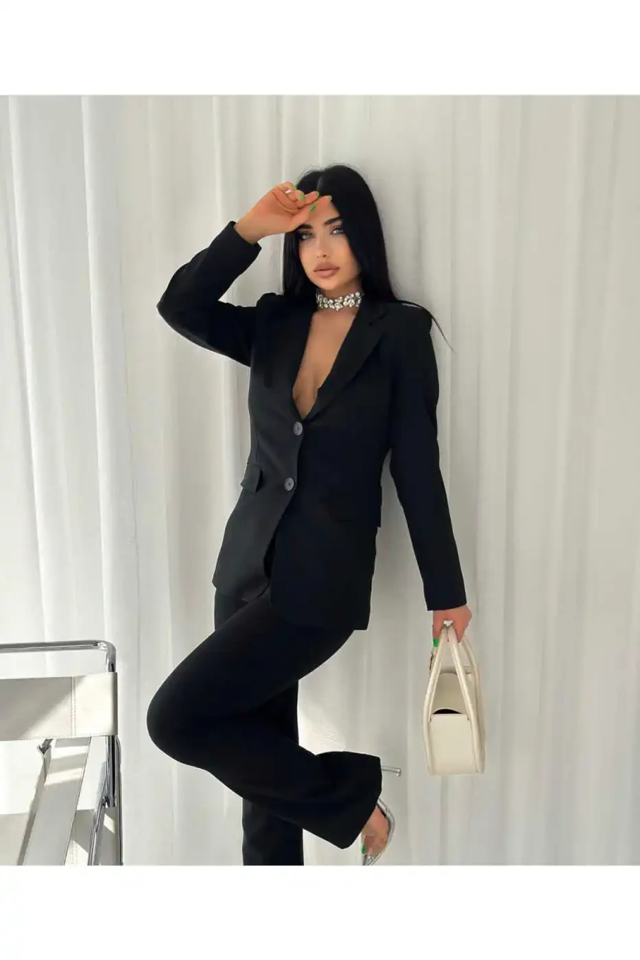 Черный цвет, символ вневременной элегантности, встречается с вами в этом костюме, который станет незаменимой частью вашего гардероба. Этот костюм, который вы можете легко выбрать как для деловой жизни, так и для особых мероприятий, привлечет внимание своим элегантным кроем и безупречной посадкой.