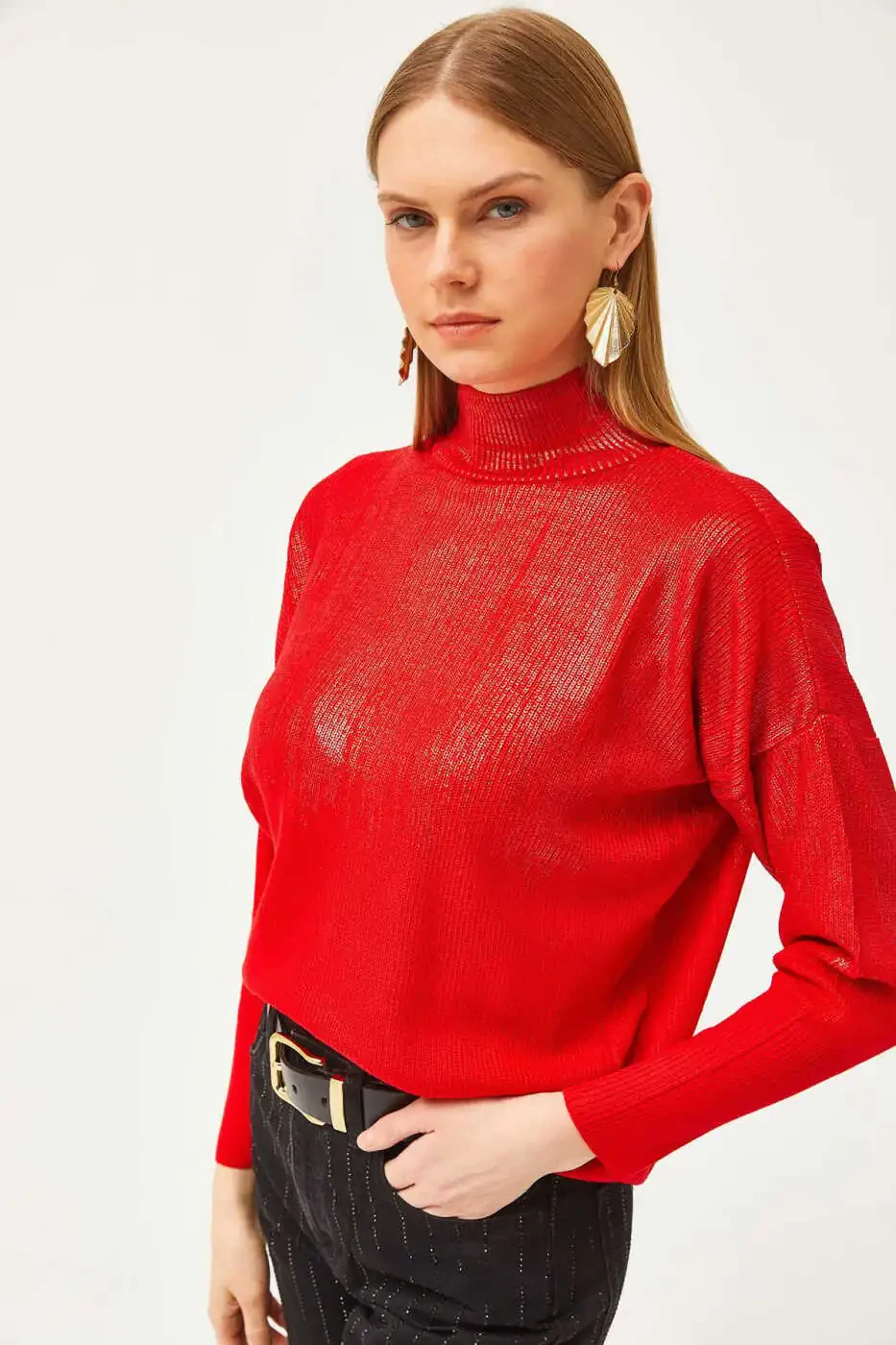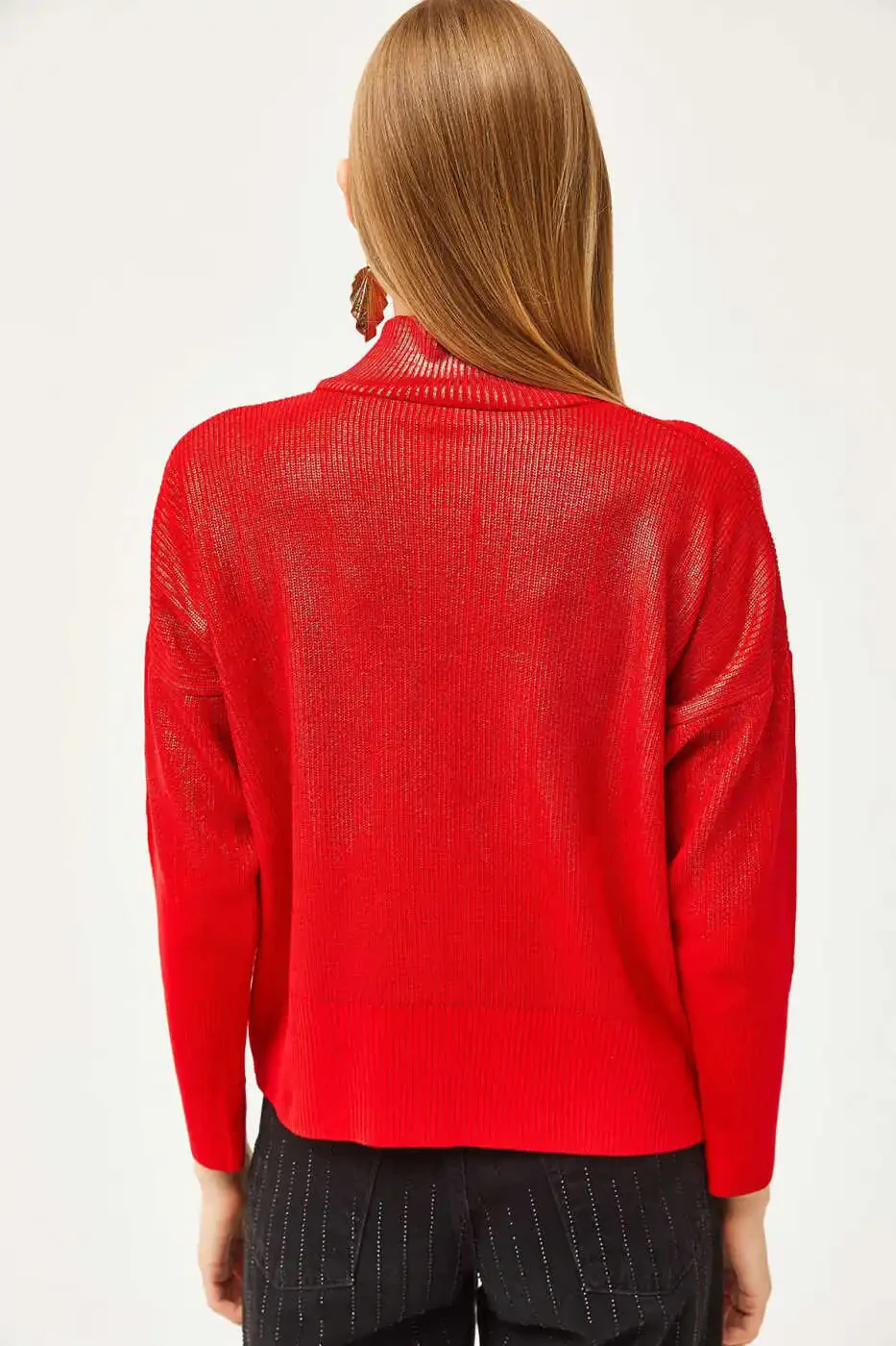 Женский красный полурыбачий трикотажный свитер | Trendyol