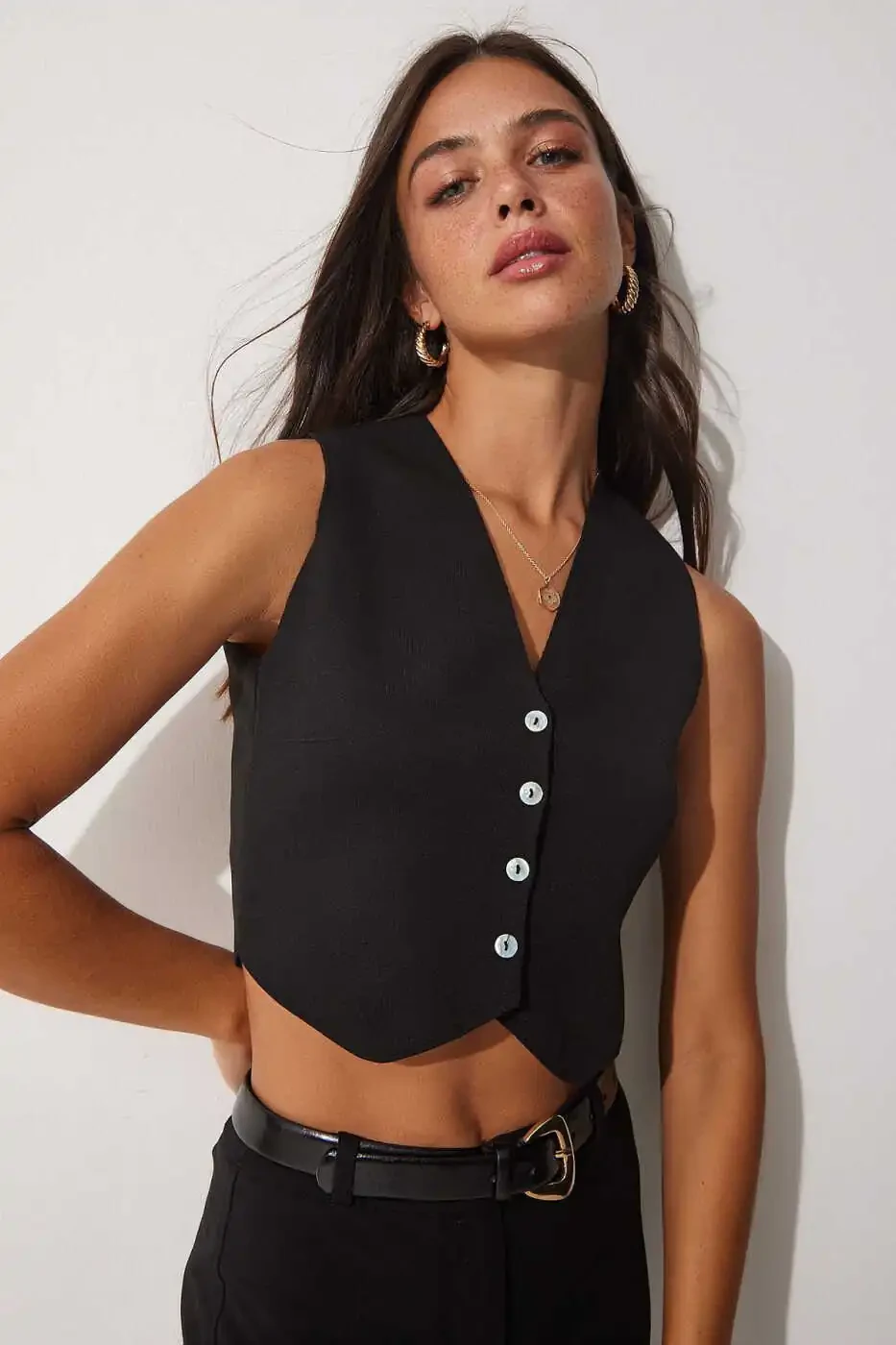 Женский летний трикотажный жилет YY00139 черного цвета с V-образным вырезом и пуговицами доставляется компанией Trendyol. Может продаваться несколькими продавцами. Цена товара устанавливается продавцом, и продавцы ранжируются по таким факторам, как рейтинг продавца и информация о доставке. Можно заказать не более 10 единиц. Заказы, превышающие 10 единиц, могут быть отменены компанией Trendyol. Для корпоративных заказов могут действовать другие лимиты. Подробные условия возврата можно найти на соответствующей странице. Этот жилет, сочетающий в себе элегантность и комфорт, станет идеальным дополнением к вашему повседневному образу. Качественный материал и тщательная обработка обеспечат вам его долгую службу.