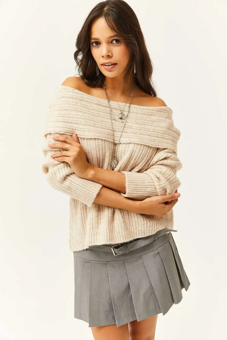 Трикотажный свитер, женский свитер, воротник Stone Madonna, мягкая текстура, удобный свитер, стильный свитер