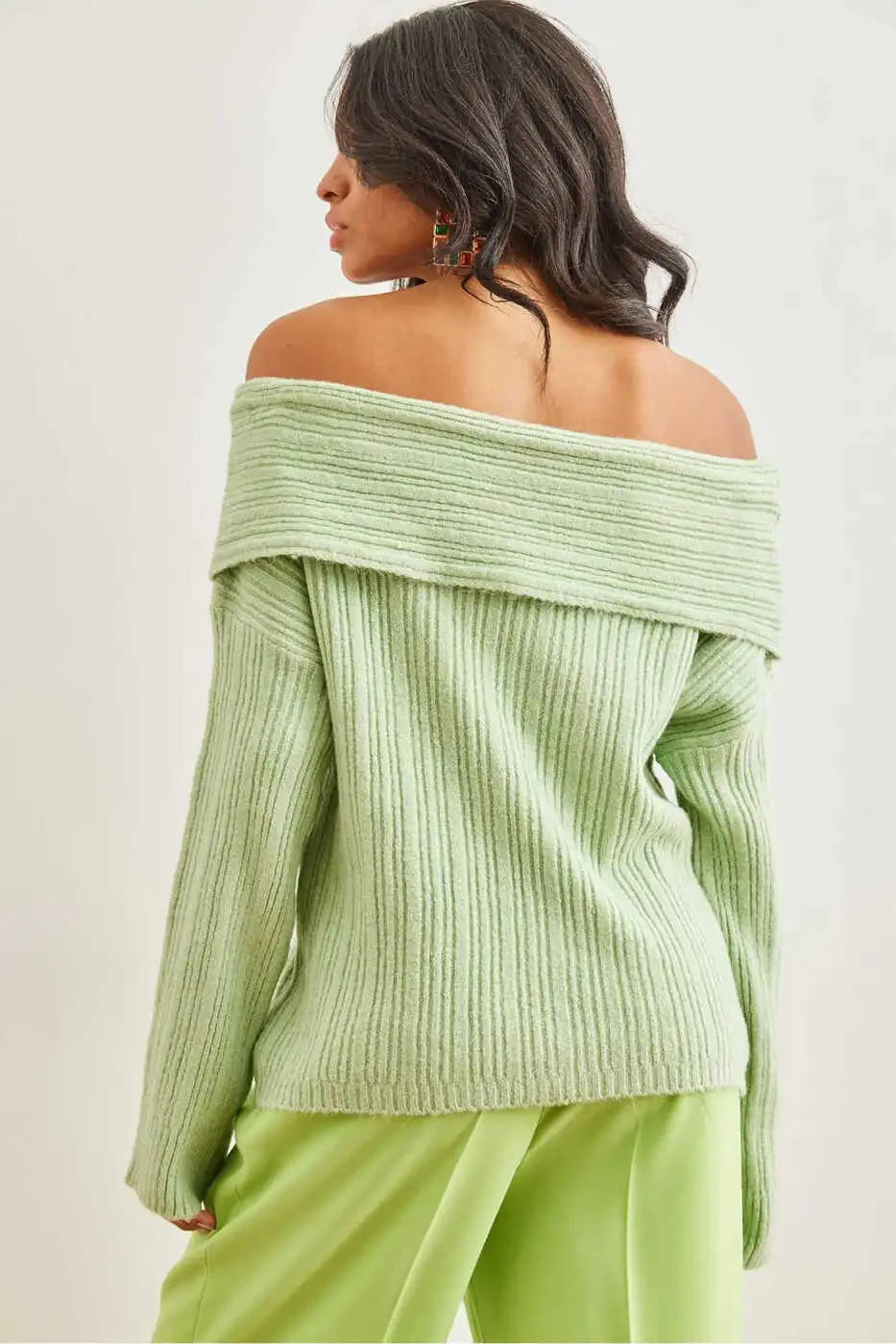 Женский свитер, свитер мятно-зеленого цвета, свитер с воротником Мадонна, свитер с мягкой текстурой, трикотажный свитер