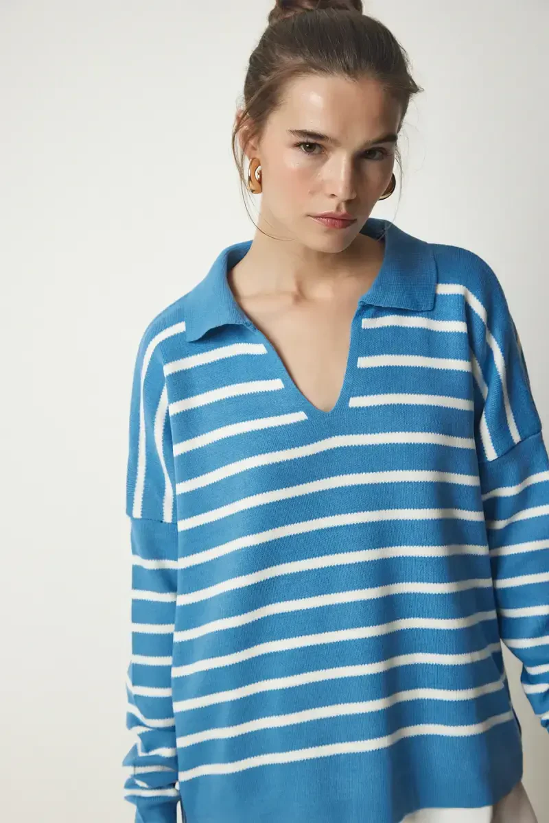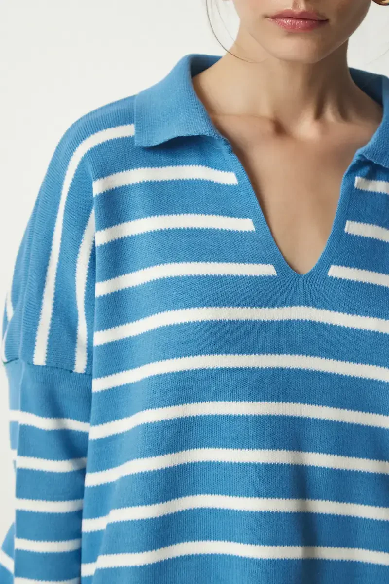 Женский небесно-голубой трикотажный свитер-кроп с воротником поло US00293-Небесно-голубой - станет незаменимой вещью в вашем гардеробе! Этот эксклюзивный дизайн, предлагаемый Trendyol - Happiness İstanbul, сочетает в себе стиль и комфорт. Воротник поло придает классический вид, а укороченный крой позволяет создать современный образ. Акриловая трикотажная ткань приятна на ощупь и обеспечивает комфорт в течение всего дня. Полосатый узор - ключ к вневременному стилю, который идеально сочетается с любым нарядом. Будь то для повседневной носки или для особого случая, в этом свитере вы всегда будете выглядеть стильно и элегантно. Длинные рукава и стандартный тип рукава обеспечивают идеальное использование в межсезонье. Он согреет вас в холодную погоду, и вам не придется жертвовать своим стилем. Его дизайн, подходящий для всех возрастных групп, станет выбором тех, кто хочет выглядеть молодо и динамично. Изделие специально разработано для рождественской коллекции и позволяет отразить новогодний дух в вашем стиле. Прямой крой мягко подчеркивает линии вашей фигуры, а укороченная длина придает модный вид. Эластичность и комфорт трикотажной ткани не ограничивают вашу свободу движений. Вы можете легко носить его во время повседневной суеты или на приятном ужине. Этот свитер средней плотности поддерживает идеальный баланс температуры в межсезонье. Не слишком жарко и не слишком холодно, в самый раз! Материал из 100% акрила обеспечивает долговечность и длительный срок службы. Следуя правильным инструкциям по стирке, вы сможете носить свой свитер как новый долгие годы. Этот стильный и удобный свитер станет одной из ваших любимых вещей в гардеробе. Небесно-голубой цвет легко сочетается с любым нарядом.