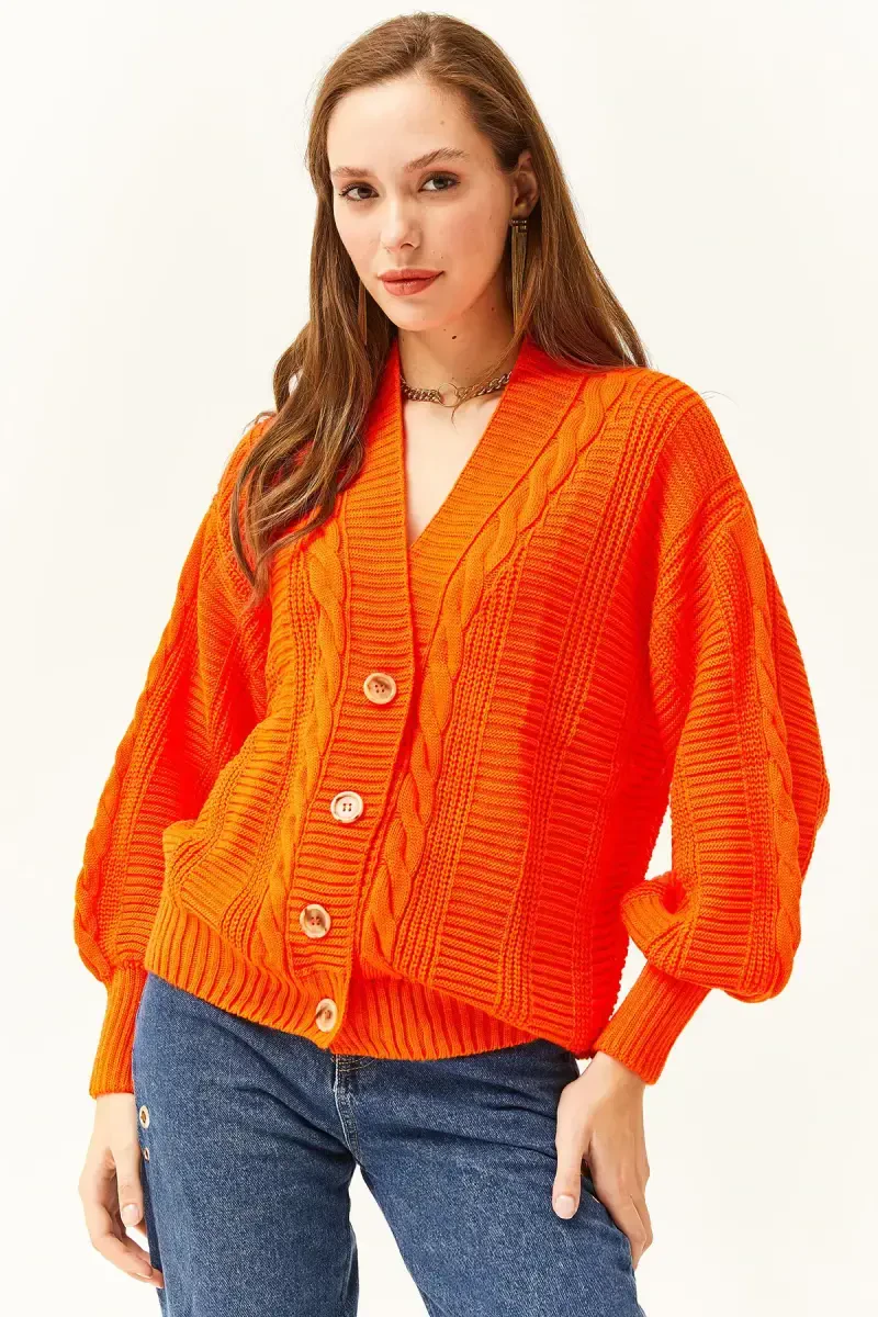 Оживите свой стиль с помощью женского оранжевого трикотажного кардигана с толстой косой HRK-19000082-Turuncu! Этот кардиган - не просто одежда, это еще и способ самовыражения. Он отражает вашу энергию своим привлекательным оранжевым цветом и придает неповторимый вид благодаря узору с толстой косой. Благодаря удобному крою вы можете наслаждаться свободой движений в течение всего дня, не жертвуя своим комфортом. Будь то повседневные дела или особые моменты, этот кардиган всегда будет с вами.Согреться в холодную погоду больше не означает жертвовать своим стилем. Этот трикотажный кардиган согреет вас и подчеркнет ваш стиль. Благодаря дизайну на пуговицах его легко надевать и снимать, и его можно сочетать с разными нарядами. Вы можете создать непринужденный образ с джинсами, придать женственности с юбками или создать стильный наряд с платьями.Женский оранжевый трикотажный кардиган с толстой косой HRK-19000082-Turuncu станет незаменимой частью вашего гардероба. Этот кардиган, который согревает и предлагает стильный внешний вид, привлечет к себе внимание в любой обстановке. Почувствуйте себя особенной и уникальной, примерьте этот кардиган и выразите свой стиль. С этим кардиганом возрастет не только ваш внешний вид, но и уверенность в себе. Этот кардиган, который будет сопровождать вас в каждый момент, готов стать самой любимой частью вашего гардероба. С энергией оранжевого и элегантностью косы он придаст другое измерение каждому вашему наряду. Это не просто кардиган, это еще и икона стиля! Выразите свой стиль с помощью женского оранжевого трикотажного кардигана с толстой косой HRK-19000082-Turuncu!