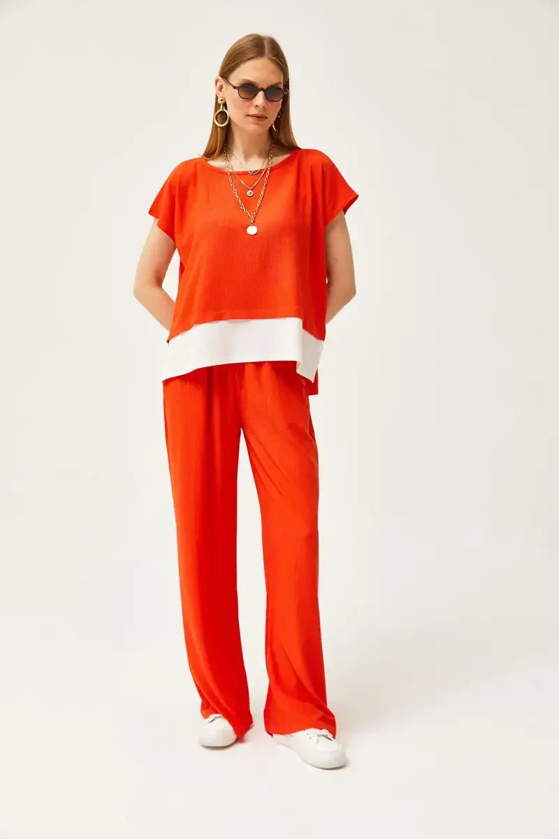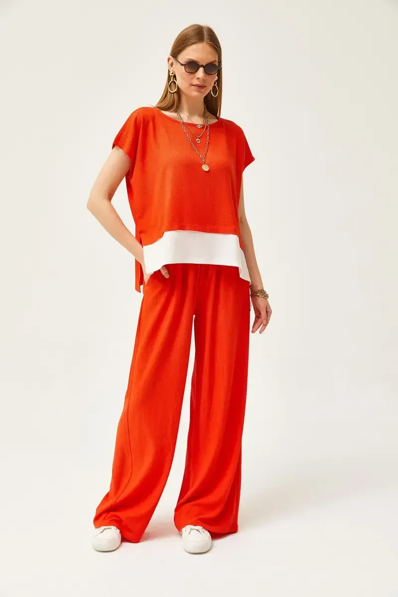 Kadın Turuncu Üst Bluz Alt Pantolon Takım TKM-1900, şıklığı ve rahatlığı bir araya getiren, her ortamda rahatlıkla tercih edebileceğiniz bir seçenektir. Olalook official tarafından sunulan bu takım, sade ve şık tasarımıyla dikkat çekerken, %100 polyester materyali sayesinde uzun ömürlü kullanım ve kolay bakım imkanı sunar. Kampanya fiyatıyla sunulan bu özel takım, sınırlı sayıda stokla satışa sunulmuştur. Bu benzersiz kombin, birden fazla satıcı tarafından sunulabilmekle birlikte, en avantajlı fiyat, satıcı puanı, hızlı teslimat ve kargo seçenekleri dikkate alınarak sıralanmaktadır. Bu şık ve kullanışlı takım, günlük giyimden özel etkinliklere kadar her anınıza eşlik edecek. Turuncu rengin enerjisiyle stilinizi canlandırırken, rahat kesimi sayesinde gün boyu konforlu hissedeceksiniz. Üst bluz ve alt pantolonun mükemmel uyumu, gardırobunuzun vazgeçilmez parçası olmaya aday. Standart kol tipi ve dokuma kumaş yapısı, dayanıklılığı artırarak ürünün formunu uzun süre korumasına yardımcı olur. Type 1 yıkama talimatına uygun şekilde temizlenmesi, takımın ilk günkü canlılığını korumasını sağlar. Polyester materyal, hafifliği ve esnekliği ile hareket özgürlüğünüzü kısıtlamazken, boru paça tasarımı modern bir görünüm sunar ve farklı ayakkabı seçenekleriyle kolayca kombinlenebilir. Bisiklet yaka kesimi, zarif bir boyun hattı oluştururken, günlük kullanım için ideal bir seçenektir. Normal bel yüksekliği sayesinde gün içinde rahat hareket etme olanağı sunar. Tüm yaş gruplarına hitap eden geniş beden skalasıyla herkes için uygunluk sunar. Regular boy ve kalıp seçeneğiyle vücut hatlarınıza mükemmel uyum sağlar. İster spor ayakkabılarla günlük bir kombin yapın, ister topuklu ayakkabılarla daha şık bir görünüm elde edin, bu takım her zaman stilinizi tamamlayacak. 15 gün içinde ücretsiz iade imkanıyla, ürünü gönül rahatlığıyla deneyebilirsiniz. Detaylı bilgi için iade koşullarımızı inceleyebilirsiniz. Bu takım, sadece bir kıyafet değil, aynı zamanda bir yaşam tarzı sunar. Kendinizi özel ve özgür hissetmek için Kadın Turuncu Üst Bluz Alt Pantolon Takım TKM-1900'ü tercih edin.