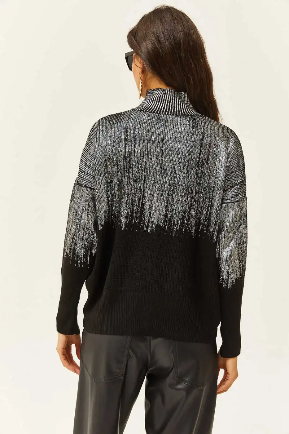 Женский серебряный свитер, Полурыбацкий свитер, Свитер с металлическими деталями, Трикотажный свитер, Trendyol