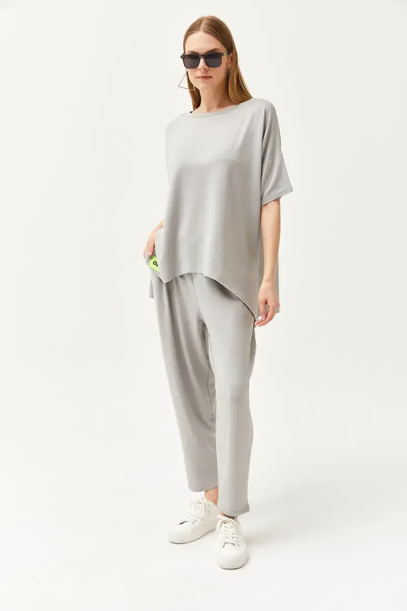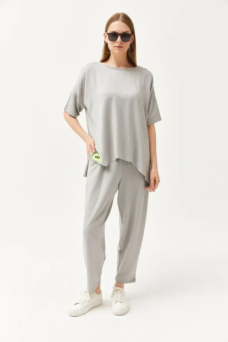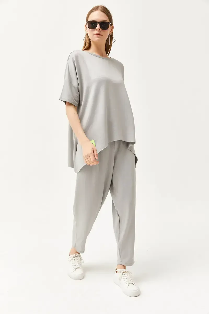 Ощутите элегантность и комфорт вместе с женским серым асимметричным комплектом из мягкой ткани с блузкой! Этот эксклюзивный комплект с современным и оригинальным стилем привлекает внимание, а благодаря мягкой текстуре обеспечивает комфорт в течение всего дня. Асимметричная блузка создает различный и динамичный вид, а нижняя часть идеально сочетается с ней, создавая стильный образ.Этот комплект идеально подходит для повседневного использования, особых мероприятий или элегантного ужина и станет незаменимой частью вашего гардероба. Благодаря благородству серого цвета и легкости сочетания, вы можете легко дополнить его различными аксессуарами и обувью. Создайте повседневный образ со спортивной обувью или элегантный образ с туфлями на каблуке, этот комплект будет сопровождать вас в любой ситуации.Этот комплект, изготовленный из смеси 50% полиэстера и 50% хлопка, является одновременно прочным и дышащим. Таким образом, вы не жертвуете своим комфортом даже при длительном использовании. Ткань изделия также предлагает практичное использование благодаря своей легко гладящейся текстуре.Размер S/36 на модели показывает идеальную посадку изделия. Размеры модели (Рост: 1,76, Грудь: 84, Талия: 60, Бедра: 90) помогут вам выбрать размер. Размеры изделия Длина/Грудь 76/62 см, Длина/Талия 86/28 см. Пожалуйста, примите эти размеры во внимание при выборе наиболее подходящего для вас размера.Этот продукт, предлагаемый с гарантией Trendyol, доступен в ограниченном количестве по акционной цене. Если вы хотите приобрести этот стильный и удобный комплект, поторопитесь! Помните, что один продукт может продаваться несколькими продавцами, и продавцы сортируются по таким факторам, как цена, рейтинг, статус доставки, акции, доставка и быстрая доставка. Вы можете заказать не более 10 штук этого товара. Заказы свыше 10 штук могут быть отменены Trendyol. Для корпоративных заказов могут быть установлены разные лимиты. Если вам не нравится продукт, вы можете вернуть его бесплатно в течение 15 дней. Для получения подробной информации ознакомьтесь с условиями возврата. Пожалуйста, имейте в виду, что цвета могут незначительно отличаться из-за разницы в освещении во время студийной съемки. Не упустите этот стильный и удобный комплект, вдохните новую жизнь в свой стиль!