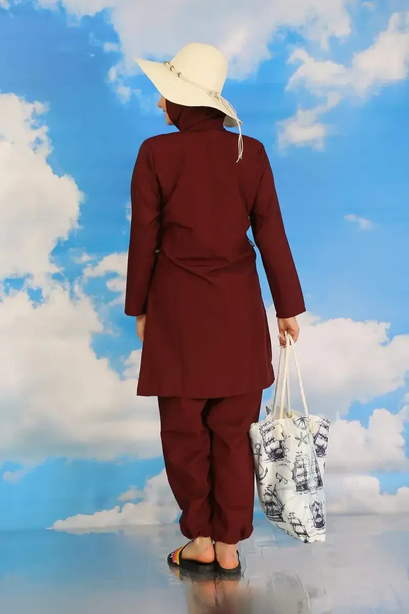 Женский купальник, закрытый купальник, полностью закрытый купальник, бордовый купальник, купальник с полной защитой, солнцезащитный купальник