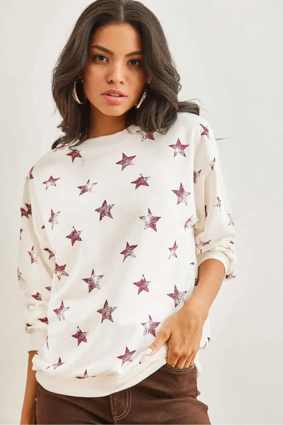 Женская бордовая толстовка свободного кроя со звездой | Стиль и комфорт в одном флаконе