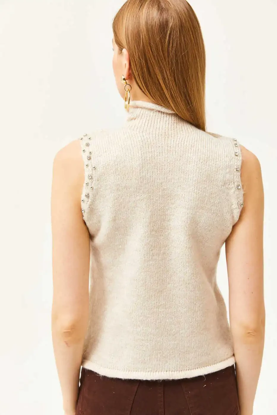 Женский вязаный свитер с высоким воротом и камнями: ежедневный комфорт и стиль