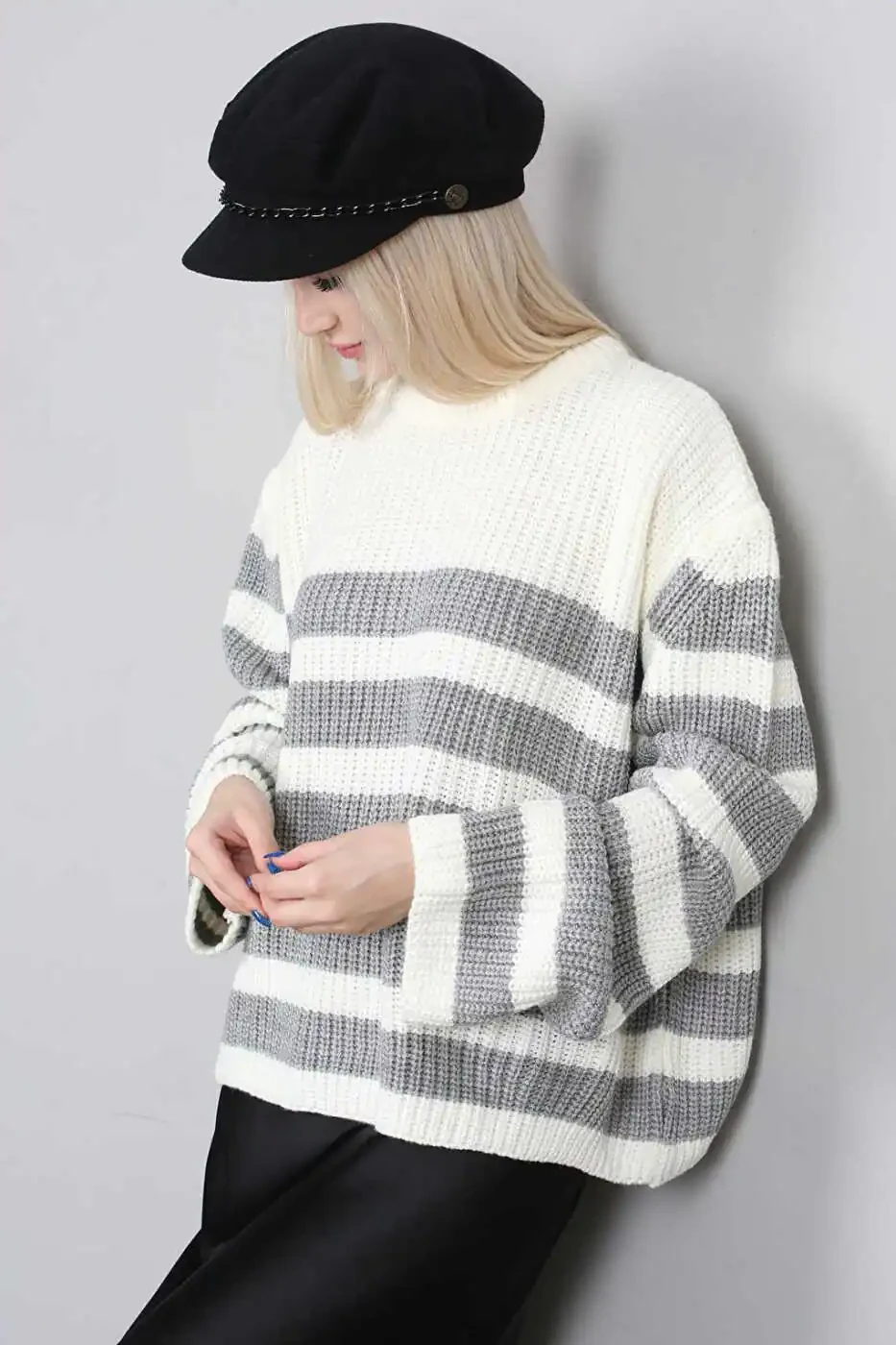 Идеальный выбор для тех, кто ищет стиль и комфорт в одном флаконе, женский свитер в серую полоску добавит изысканности любому вашему наряду. Изготовленный из мягкого и высококачественного материала, этот свитер обеспечивает комфорт в течение всего дня. Этот свитер, который вы особенно можете предпочесть в своих повседневных комбинациях, прекрасно сочетается с джинсами, юбками или леггинсами.