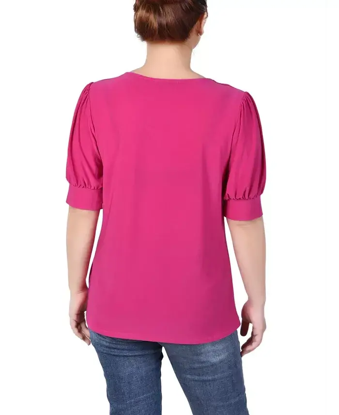 Футболка с короткими рукавами-фонариками - Мягкая трикотажная ткань 95% полиэстер 5% спандекс
