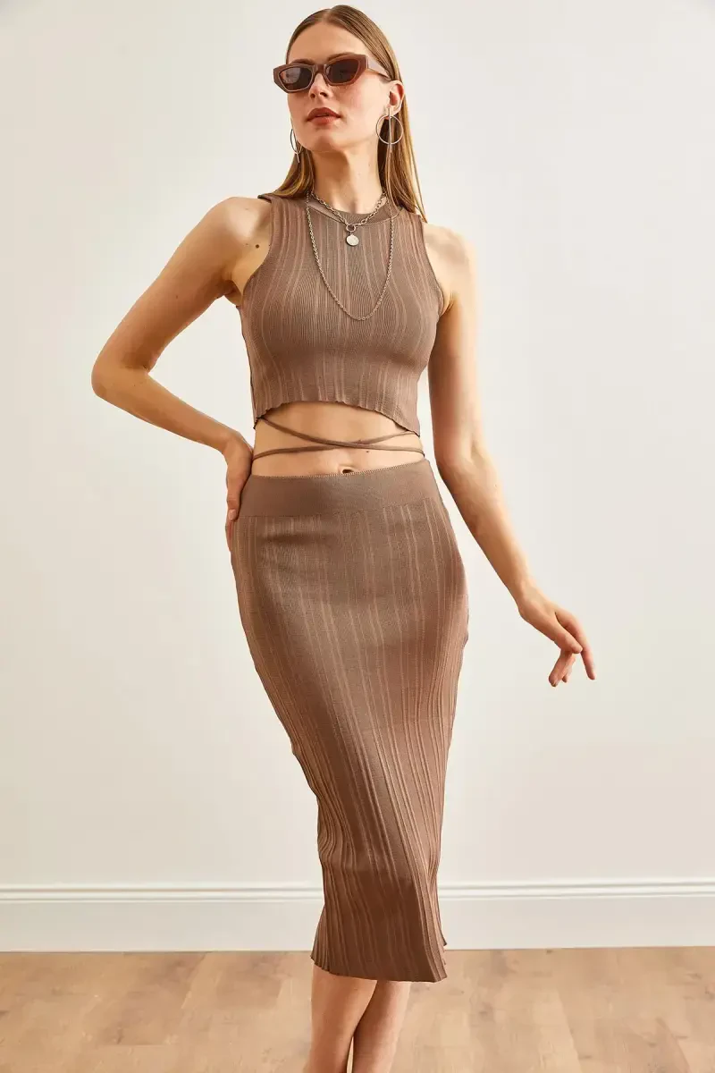 Kadın Vizon Üst İpli Bluz Alt Etek Triko Takım TKM, şıklığı ve rahatlığı bir araya getiren özel bir tasarımdır. Bu takım, Olalook Official güvencesiyle sunulmakta olup, kampanya fiyatıyla dikkat çekmektedir. Yumuşak dokusu ve konforlu kesimi sayesinde gün boyu rahatlık sağlar. %100 pamuk materyal bileşeni, teninize nefes aldırırken aynı zamanda yumuşak bir his sunar. Düz deseni ve sade tasarımı, her ortama kolayca uyum sağlamanıza olanak tanırken, günlük şıklığınızı en üst düzeye çıkarır.Regular kalıp ve ideal boyu sayesinde vücudunuza tam oturur ve hareket özgürlüğünüzü kısıtlamaz. Bisiklet yaka tasarımı ve normal bel yüksekliği, modern bir görünüm yaratırken, standart kol tipi günlük kullanım için son derece pratiktir. Boru paça kesimi, şık bir siluet oluşturarak tarzınızı ön plana çıkarır. Kısa kol boyu, özellikle yaz aylarında serin ve ferah bir kullanım sunar.Dokuma kumaş tipi, takımın dayanıklılığını artırarak uzun ömürlü bir kullanım imkanı sunar. Bu sayede, gardırobunuzun vazgeçilmez parçalarından biri haline gelir. Tüm yaş gruplarına hitap eden tasarımı sayesinde geniş bir kullanıcı kitlesine hitap eder. İster günlük kullanımda, ister özel günlerde rahatlıkla tercih edebileceğiniz bu takım, şıklığınızı tamamlayacak en önemli detaylardan biridir.Kolay bakım avantajı sunan yıkama talimatları sayesinde pratik bir kullanım deneyimi yaşatır. Makinede yıkanabilir özelliği, yoğun yaşam temposunda size zaman kazandırır. Bu şık ve kullanışlı triko takım ile her zaman bakımlı ve stil sahibi görünebilirsiniz. Olalook Official kalitesiyle sunulan bu özel tasarım, gardırobunuzun vazgeçilmez bir parçası olmaya adaydır.