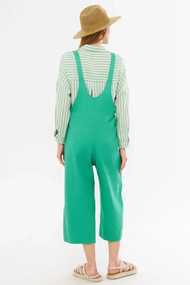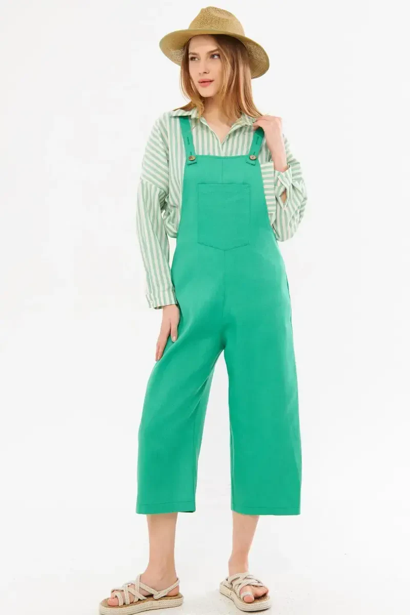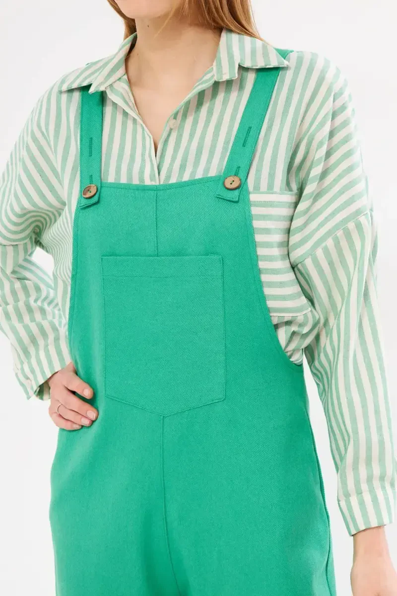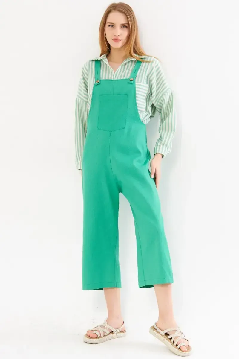 Kadın Yeşil Bahçıvan Tulum ARM-20K001117-Yeşil, ARMONİKA tarafından özenle tasarlanmış ve günlük stilinize modern bir dokunuş katmak için ideal bir seçenektir. Basic koleksiyonunun bir parçası olarak sunulan bu tulum, rahatlığı ve şıklığı bir araya getirerek gardırobunuzun vazgeçilmezi olmaya aday. Boru paça kesimi sayesinde hem trendi yakalamanızı sağlar hem de hareket özgürlüğünüzü kısıtlamadan gün boyu konforlu hissetmenize olanak tanır. Düz tasarımı, tulumu her türlü üst giyim ve aksesuarla kolayca kombinleyebilmenizi sağlarken, kare yaka detayı feminen bir dokunuş ekleyerek görünümünüzü zenginleştirir. İster spor bir tişörtle, ister şık bir bluzla tamamlayarak farklı stiller yaratabilirsiniz.%50 polyester ve %50 pamuk karışımından üretilen bu tulum, hem dayanıklılığı hem de konforu garanti eder. Pamuklu yapısı cildinize nefes aldırırken, polyester içeriği ürünün formunu korumasına ve uzun ömürlü olmasına yardımcı olur. Askılı kol boyu, özellikle sıcak havalarda serin ve rahat bir kullanım sunar. Düz deseni, farklı renk ve desenlerdeki aksesuarlarla kombinleme özgürlüğü tanırken, dokuma kumaş tipi sayesinde tulumunuz uzun süre ilk günkü gibi kalır.Bu tulum, genç ve dinamik bir tarz arayan kadınlar için mükemmel bir seçimdir. Regular kalıp, vücut hatlarınıza doğal bir şekilde uyum sağlayarak gün boyu rahatlık sunar. Yüksek kaliteli malzemesi ve özenli işçiliği sayesinde uzun süreli kullanım için idealdir. Yıkama talimatlarına uygun şekilde bakım yaparak tulumunuzun ömrünü uzatabilir ve her zaman yeni gibi görünmesini sağlayabilirsiniz. İster günlük gezintilerde, ister arkadaşlarınızla buluşmalarda, isterse de özel etkinliklerde rahatlıkla tercih edebileceğiniz bu tulum, stilinizi yansıtmanın en kolay ve şık yoludur. ARMONİKA kalitesiyle tasarlanan bu ürün, hem tarzınızı hem de konforunuzu ön planda tutmanızı sağlar.