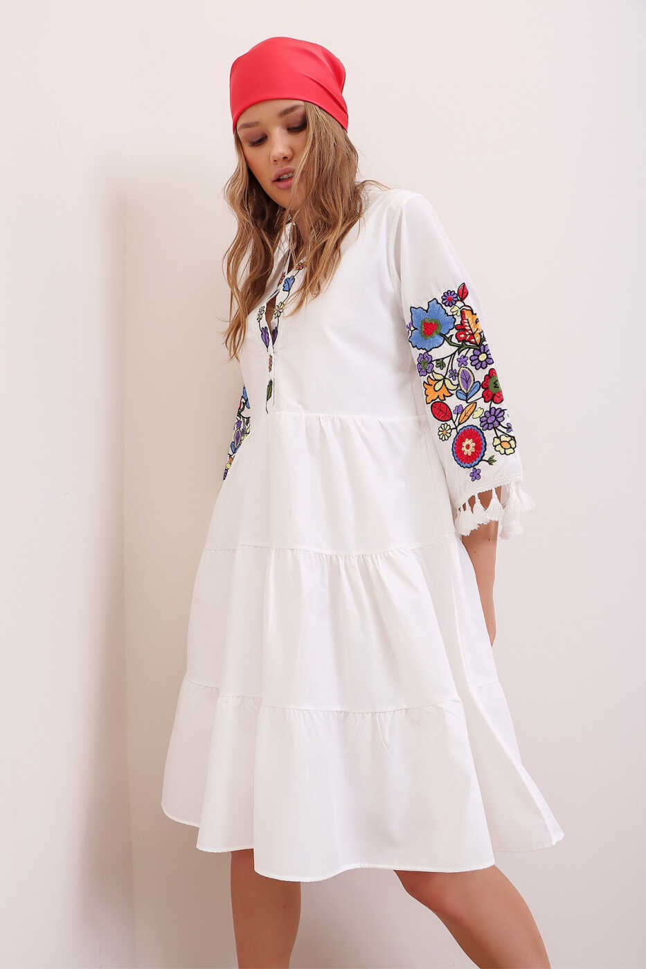 женское платье, белое платье, платье с воротником-мандарином, вышитое платье, платье с кисточками, платье из поплина, модели платьев, платья для особых случаев, деловые платья, стильное платье, элегантное платье