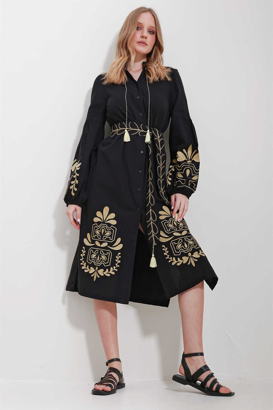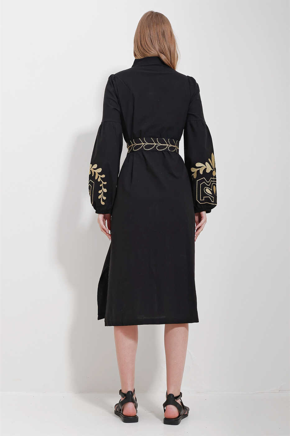 Женское черное платье из льна с воротником-мандарином, поясом и двойным разрезом ALC-X11570 - идеальный выбор для женщин, которые хотят быть стильными и комфортными в летние месяцы. Закажите прямо сейчас и позвольте своему стилю говорить сам за себя!