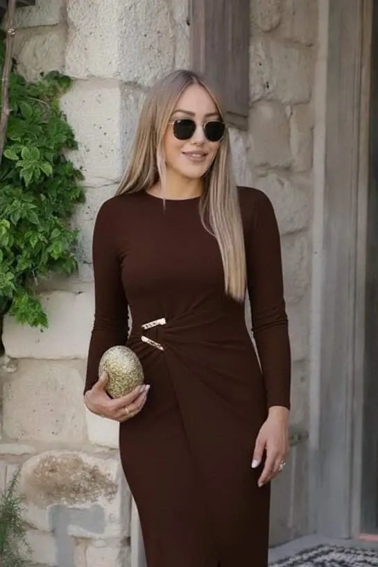 Это платье — идеальный выбор для особых случаев или для завершения вашего повседневного шикарного образа. Благодаря легкости и текучести ткани Sandy вы будете чувствовать себя комфортно в течение всего дня. Перекрестные детали спереди и пряжка сбоку изящно подчеркивают ваши формы, а дизайн с длинными рукавами позволяет носить его в любое время года. Вы можете выразить свой собственный стиль, сочетая его с различными аксессуарами. Платье легко в уходе и долго сохраняет свой первоначальный вид. Не пропустите это платье, которое станет незаменимой частью вашего гардероба!