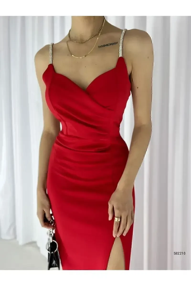 Женское красное вечернее платье на бретельках с разрезом из импортной ткани Scuba с отделкой камнями — ослепительный выбор, который подчеркнет вашу элегантность и стиль в особых случаях. Это вечернее платье, которое привлечет всеобщее внимание на вашей помолвке, свадьбе, выпускном или особых вечеринках, станет незаменимым элементом вашего гардероба на долгие годы благодаря качеству импортной ткани Scuba и безупречному качеству изготовления. Очаровательный оттенок красного демонстрирует смелую и эффектную осанку, а детали из камней добавляют платью блеска и изысканности. Дизайн на бретельках создает женственный силуэт, изящно подчеркивая ваши плечи и декольте. Мини-длина и разрез обеспечивают современный и привлекательный вид, не ограничивая вашу свободу движений. Платье идеально сидит по фигуре и имеет узкий крой, идеально облегает ваши формы и помогает вам выглядеть стройнее. Внутренняя часть на подкладке обеспечивает комфорт в течение всего дня. Энергия красного цвета и стильные детали платья помогут вам оставить незабываемое впечатление в особые моменты. Это вечернее платье сочетает в себе классический и современный стиль, что позволяет ему адаптироваться к любой обстановке. Вы можете создавать разные стили с помощью выбора аксессуаров и дополнять свой стиль. Независимо от того, выберете ли вы классический образ с элегантным колье и туфлями на каблуках или более непринужденный и стильный образ с современными украшениями и сандалиями. Женское красное вечернее платье на бретельках с разрезом из импортной ткани Scuba с отделкой камнями создано для того, чтобы вы чувствовали себя особенной в особые дни. Благодаря качественной ткани, привлекательным деталям и идеальному крою это платье станет одним из самых ценных предметов вашего гардероба. Если вы хотите оставить след своим стилем, создавая незабываемые воспоминания, это вечернее платье для вас!