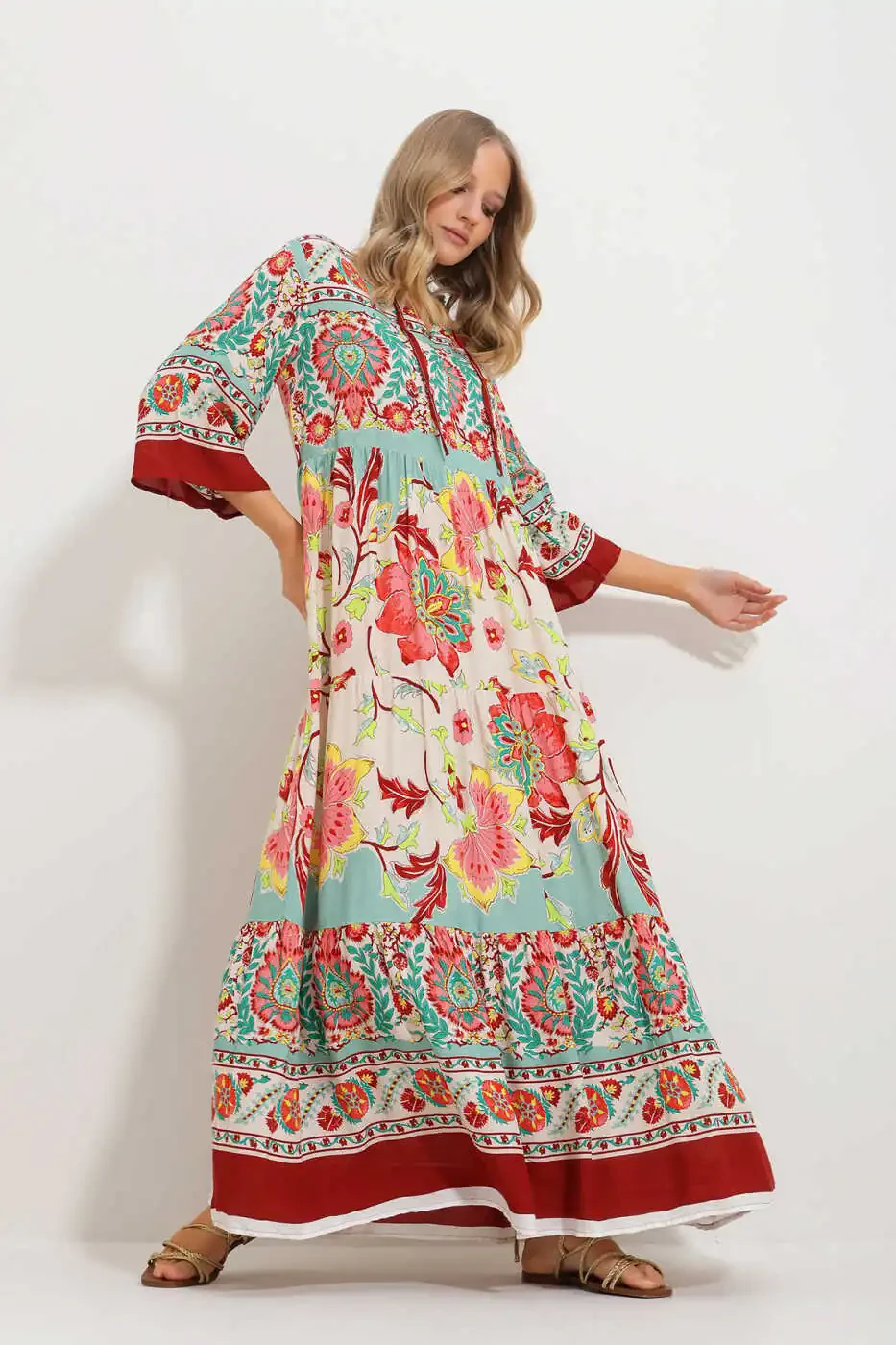 Подчеркните свою летнюю энергию с помощью женского мятного вискозного платья с узором и шнуровкой спереди! Этот уникальный дизайн сочетает в себе комфорт и стиль и станет любимой вещью в вашем гардеробе. Легкая и дышащая вискозная ткань платья обеспечивает комфорт в течение всего дня в жаркую погоду. Вискоза, мягкая на ощупь, предотвращает потоотделение и помогает вам оставаться свежим в течение всего дня. Шнуровка спереди придает платью женственный вид и элегантно подчеркивает ваши формы. Благодаря регулируемым шнуркам вы можете легко подогнать платье по своей фигуре и добиться идеальной посадки. Тканый узор придает платью движение и яркость, создавая неповторимый образ, далекий от обыденности. Освежающий мятный цвет отражает летнюю энергию и подходит для любого случая. Это платье можно носить как в повседневной жизни, так и на особые мероприятия, и оно предлагает универсальное использование. Для дневного шика сочетайте его с сандалиями и соломенной шляпой, чтобы создать богемный образ, а для вечерних мероприятий - с каблуками и изящными украшениями, чтобы создать шикарный образ. Удобный крой платья не стесняет движений и позволяет чувствовать себя комфортно в течение всего дня. Будь то прогулка по городу или отдых на солнце в отпуске, это платье всегда будет сопровождать вас. Эта особая вещь, которая обязательно должна быть в вашем гардеробе, - самый приятный способ выразить свой стиль и почувствовать себя хорошо. Наслаждайтесь летом с женским мятным вискозным платьем с узором и шнуровкой спереди!