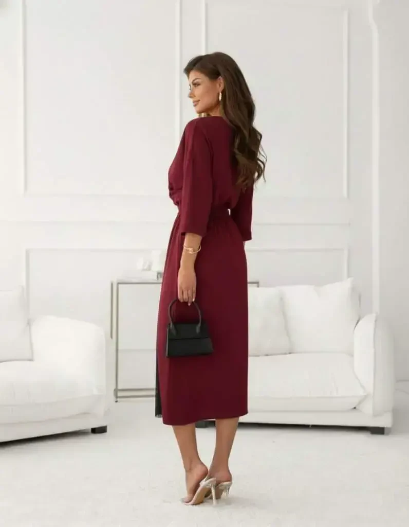 Если вы ищете вещь, которая должна быть в гардеробе каждой женщины и которая подойдет для любого случая, от особых случаев до повседневной носки, то вы попали по адресу. Женское платье миди с длинными рукавами, запахом, кружевной отделкой сбоку и из импортного крепа привлекает внимание своим современным дизайном, изящными деталями и высококачественной тканью. Это уникальное платье не только подчеркнет ваш шик, но и обеспечит комфорт в течение всего дня. Деталь с запахом придает платью женственный вид и выгодно подчеркивает фигуру. Длинные рукава делают его идеальным выбором, особенно в прохладную погоду или для более официальных мероприятий. Длина миди обеспечивает как современный, так и классический вид, что позволяет легко адаптировать его к разным стилям. Одной из самых ярких особенностей платья является кружевная отделка сбоку. Эти изящные кружевные вставки придают платью романтичный и изысканный вид, выделяя вас в любой обстановке. Кружевные детали тщательно подобраны и расположены так, чтобы соответствовать общему дизайну платья. Импортная крепированная ткань придает платью роскошный вид, обеспечивая при этом легкость и удобство ношения. Струящаяся структура крепированной ткани красиво облегает тело и не сковывает движений. Качество ткани гарантирует долговечность, что делает его незаменимой вещью в вашем гардеробе. Это платье — идеальный выбор, когда вы хотите выглядеть шикарно на особом мероприятии, на ужине или на повседневном мероприятии. Вы можете легко комбинировать его с аксессуарами, чтобы отразить свой собственный стиль. Например, вы можете создать более шикарный образ с изящным колье и туфлями на каблуках или более непринужденный образ с сандалиями и шалью. Женское платье миди с длинными рукавами, запахом, кружевной отделкой сбоку и из импортного крепа имеет дизайн, который не только позволяет вам выглядеть шикарно, но и чувствовать себя хорошо. Это платье, в каждой детали которого чувствуется забота и качество, станет одним из самых ценных предметов в вашем гардеробе. Закажите сейчас и подчеркните свою элегантность!