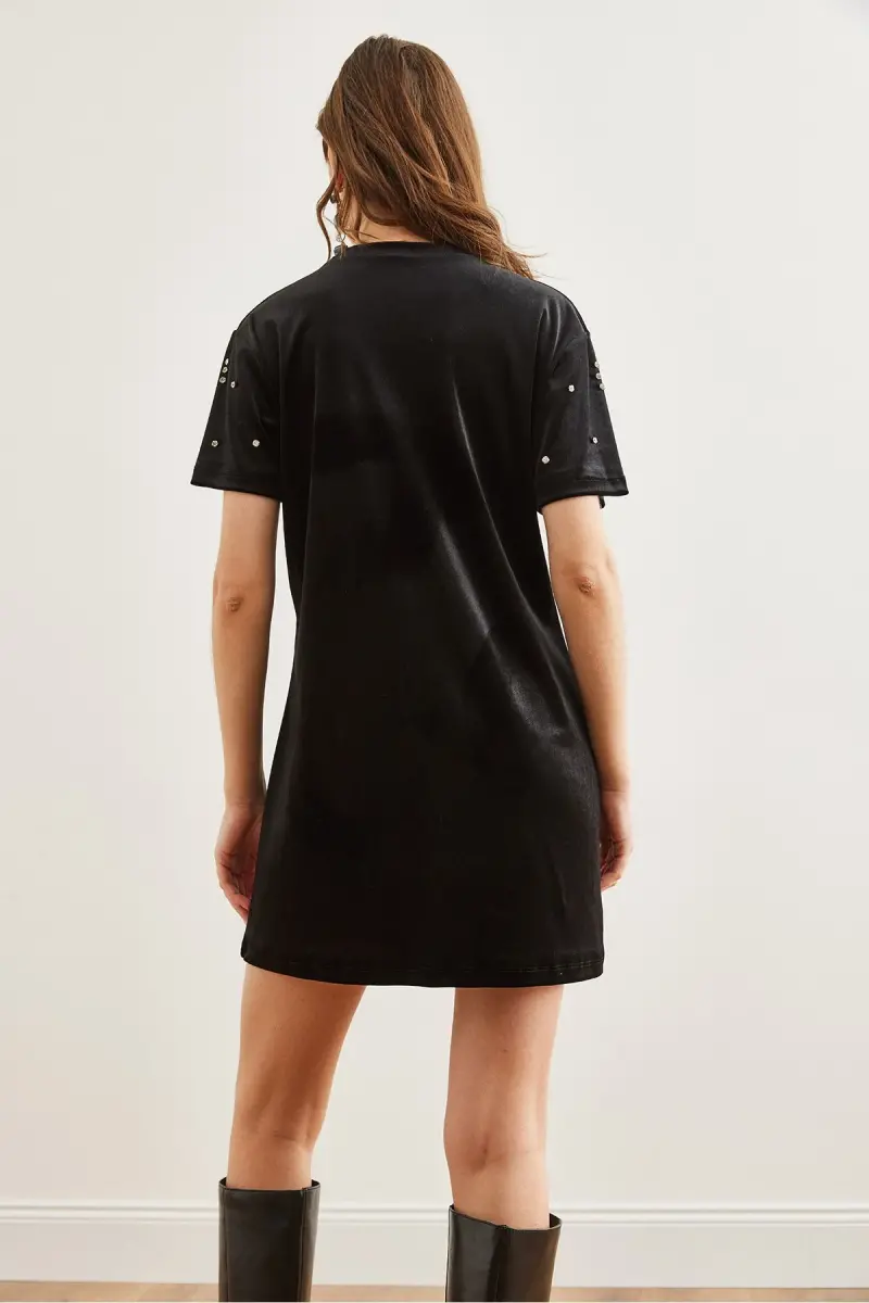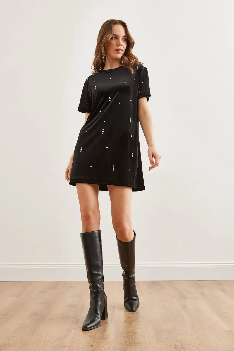 Kadın Siyah Taş Detaylı Bisiklet Yaka Mini Kadife elbise ile şıklığı ve konforu bir arada yaşayın. Özel günlerinizde veya günlük kullanımda rahatlıkla tercih edebileceğiniz bu elbise, kadife kumaşının yumuşak dokusuyla teninize hoş bir his verir. Bisiklet yakası ve mini boyu ile modern bir görünüm sunarken, taş detayları da elbiseye zarif bir dokunuş katmaktadır. Siyahın asaletini üzerinde taşıyan bu elbise, her ortamda dikkatleri üzerinize çekmenizi sağlar.Elbisenin %95 polyester ve %5 likra karışımı kumaşı, hem dayanıklılık hem de esneklik sunar. Bu sayede gün boyu rahat hareket edebilir, elbisenin üzerinizde kusursuz bir şekilde durmasını sağlayabilirsiniz. Polyesterin kırışmaya karşı dirençli yapısı sayesinde, elbiseniz her zaman bakımlı ve şık görünür. Likra ise vücudunuza tam oturan bir kesim elde etmenize yardımcı olur.Bu özel tasarım elbise, Trendyol güvencesiyle kapınıza kadar geliyor. Kampanya fiyatıyla sunulan bu üründen sınırlı sayıda bulunmaktadır. Eğer birden fazla satıcı tarafından satışa sunulmuşsa, en avantajlı fiyat, satıcı puanı, teslimat hızı gibi kriterlere göre sıralanmaktadır. Bu sayede en iyi alışveriş deneyimini yaşayabilirsiniz.Üründen en fazla 11 adet sipariş verebilirsiniz. Belirlenen bu limit, bireysel siparişler için geçerlidir ve kurumsal siparişler için farklı limitler belirlenebilmektedir. Eğer üründen memnun kalmazsanız, 15 gün içinde ücretsiz iade hakkınız bulunmaktadır. Detaylı bilgi için Trendyol'un iade koşulları sayfasını ziyaret edebilirsiniz.Modelin üzerindeki beden S/36/1'dir. Modelin ölçüleri ise şu şekildedir: Boy: 1.74, Göğüs: 80, Bel: 60, Kalça: 90. Elbisenin Boy/Göğüs ölçüsü 83/41 cm'dir. Lütfen beden ölçülerinizi dikkate alarak sipariş veriniz. Unutmayın, stüdyo çekimlerinde ışık farklılığından dolayı renklerde ufak değişiklikler olabilir.