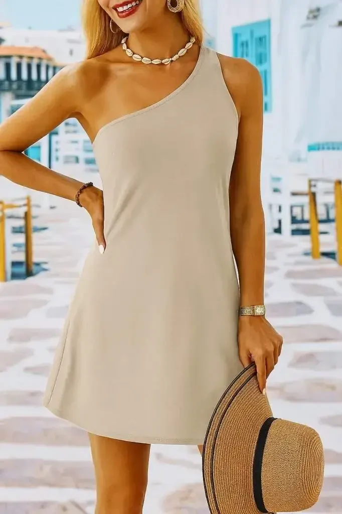 Женское платье, на одно плечо, креп, мини-платье, шикарное, элегантное, на бретельках, без рукавов, для вечеринок, повседневное