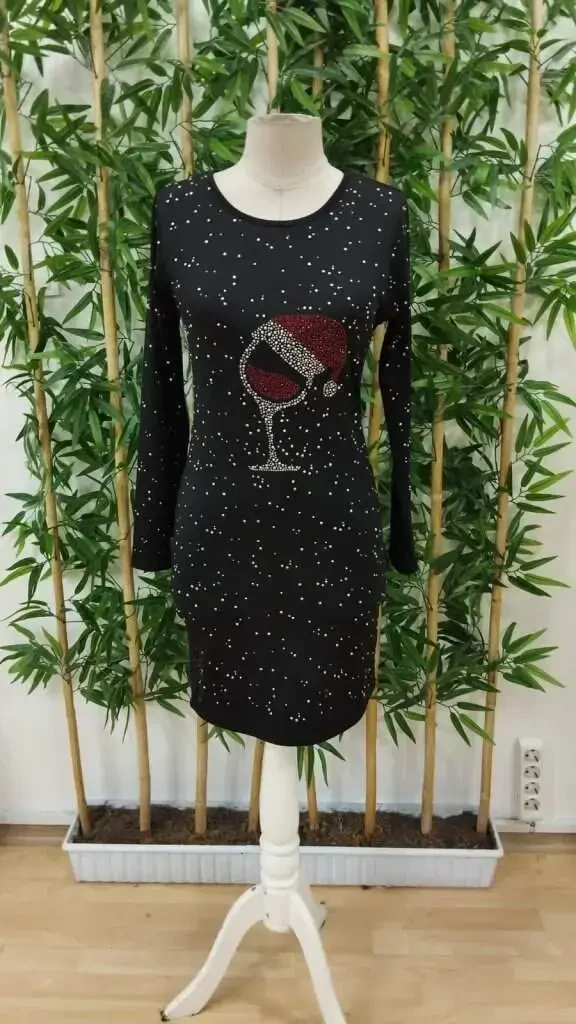 Это платье создано для женщин, которые ищут сочетание элегантности и комфорта. Благодаря ткани оно облегает фигуру и создает элегантный образ. Принт бокалов с камнями придает платью неповторимый вид. Идеально подходит для повседневной носки, но вы также можете продемонстрировать свой стиль на особых мероприятиях. Благодаря длинным рукавам его можно комфортно носить даже в прохладную погоду. Легко сочетается с различными аксессуарами.