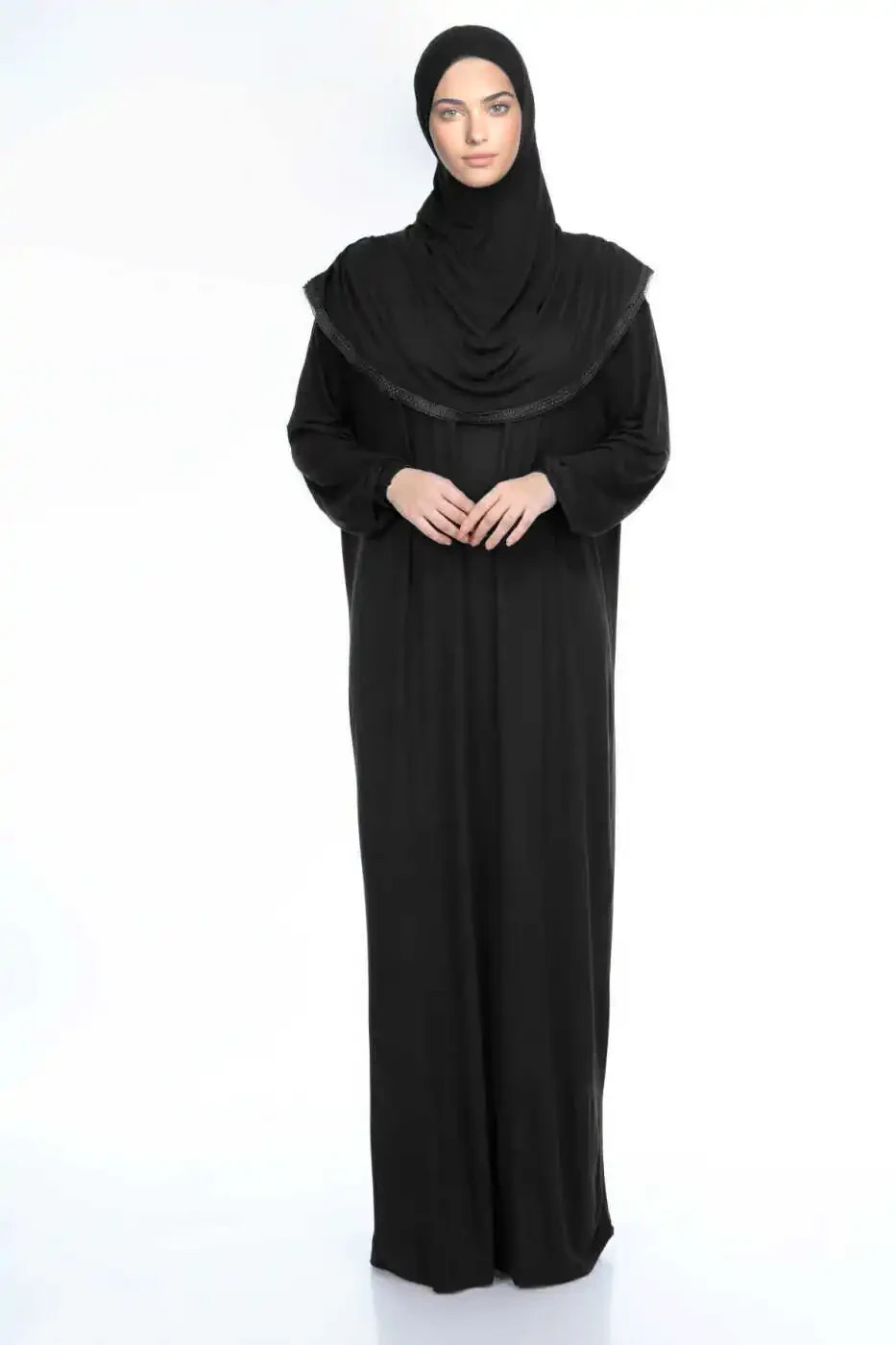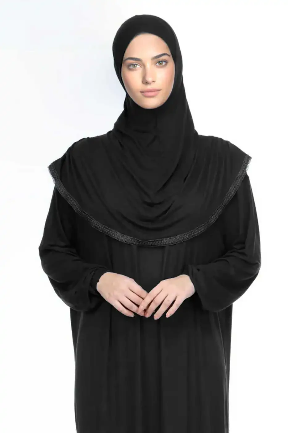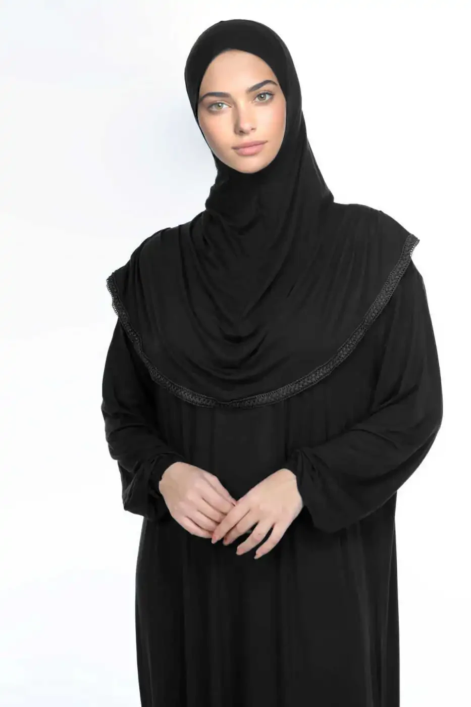 Женское молитвенное платье с платком из хлопка, кружевом и трикотажной тканью черного цвета