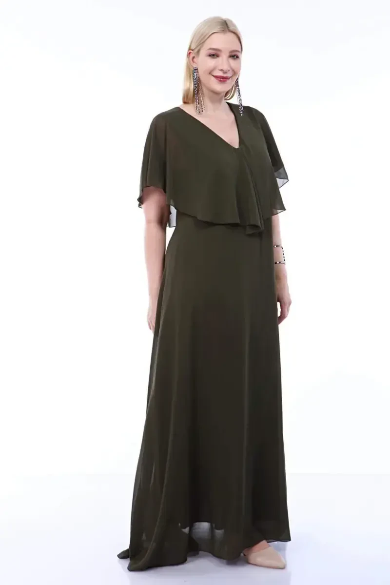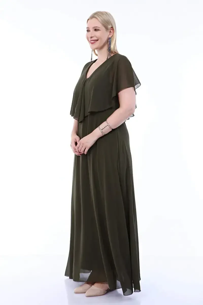 Женское платье больших размеров из шифона с V-образным вырезом и накидкой KL3065 хаки