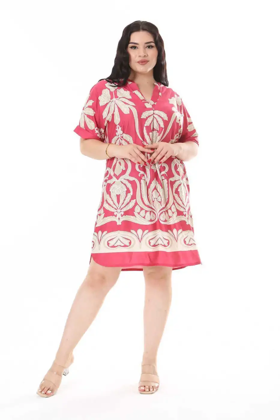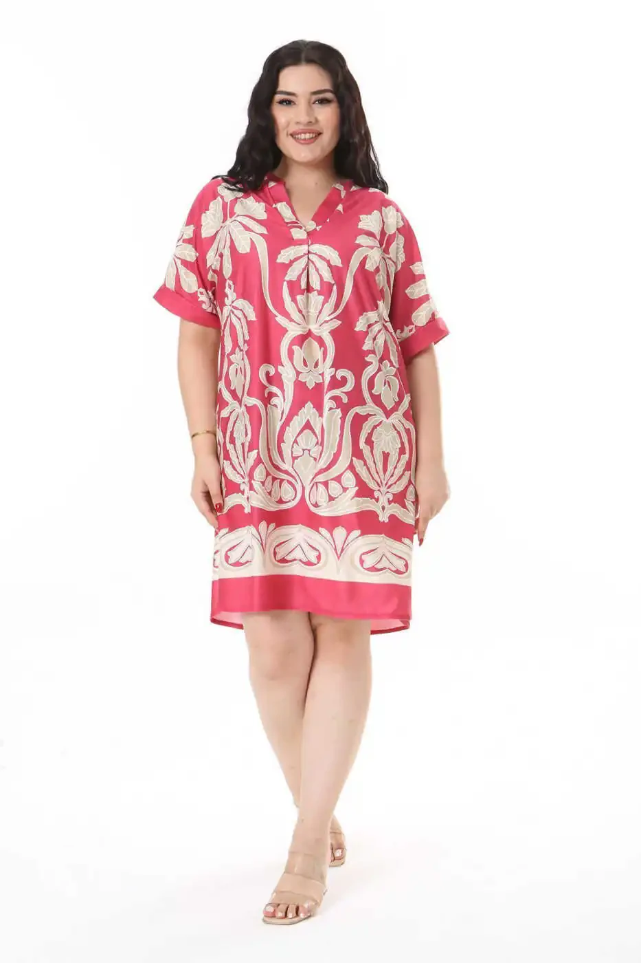 Это платье, сочетающее в себе элегантность и комфорт, станет одной из незаменимых вещей в вашем гардеробе. V-образный вырез и короткие рукава придают ему изящный вид, а свободный крой обеспечит комфорт на протяжении всего дня. Гранатовый цвет придаст вам яркий стиль, а выбор размеров plus size подойдет для любой фигуры.