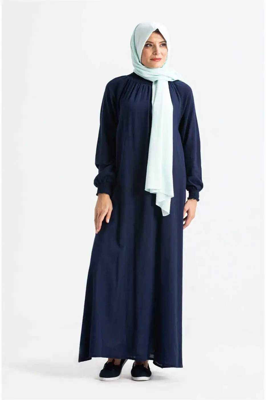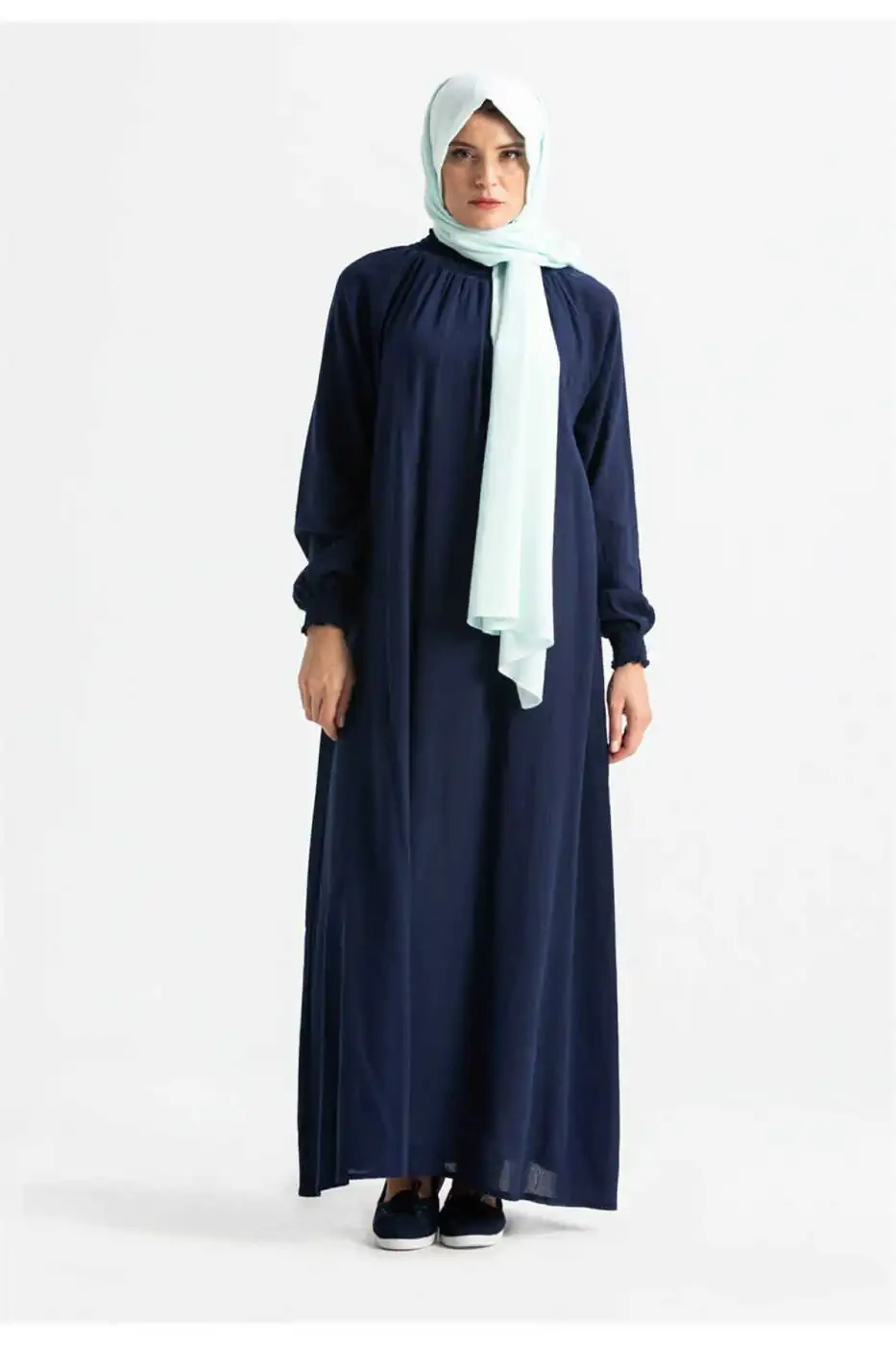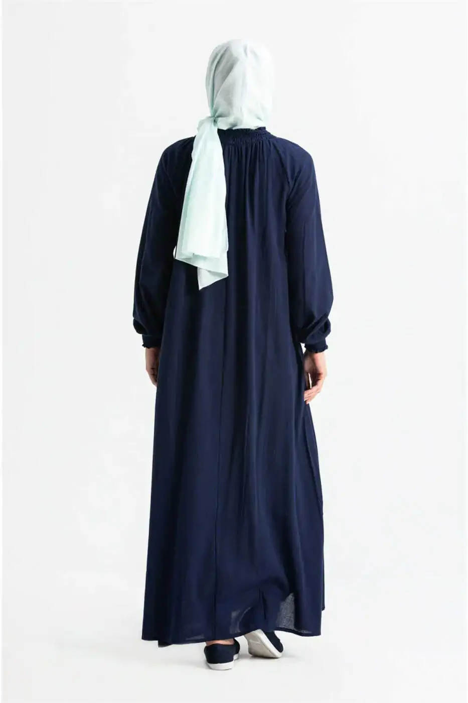 Это платье для намаза из хлопчатобумажной ткани-шиле, разработано для того, чтобы женщины чувствовали себя комфортно и стильно во время своих молитв. Это цельное платье, которое легко надевать и снимать. Платье предназначено для надевания сверху и имеет эластичные манжеты на рукавах и воротнике, что обеспечивает плотное прилегание и свободу движений. Платье представлено в красивом темно-синем цвете, что придает ему как элегантный, так и стильный вид. Высококачественная хлопчатобумажная ткань, используемая в платье, обеспечивает максимальный комфорт и легкость во время молитв. Это идеальный выбор для женщин, которые хотят совершать свои молитвы с миром и спокойствием.