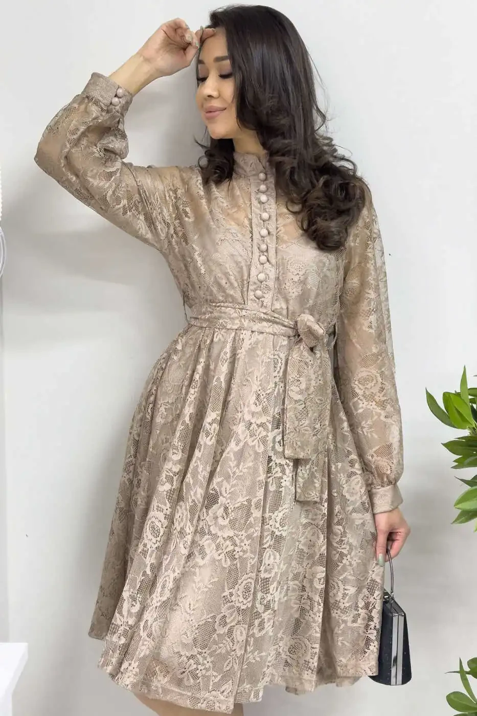 Женское платье-трапеция больших размеров с французским кружевом и пуговицами, специально разработанное для женщин plus size, стремящихся к элегантному и стильному внешнему виду, станет незаменимой частью ваших особых случаев. Платье, изготовленное из французского кружевного полотна, сочетает в себе элегантность и комфорт. Крой трапецией идеально садится на фигуру, не стесняя движений. Изысканные пуговицы на груди придают платью романтичный и женственный вид. Подкладка обеспечивает комфорт и удобство в течение всего дня, а цветовая гамма (бежевый, зеленый, черный, белый и красный) удовлетворит любой вкус. Идеально подходит для свадеб, помолвок, выпускных вечеров, торжеств и других особых мероприятий, это платье всегда будет заставлять вас чувствовать себя сногсшибательно и уверенно. Благодаря качественной ткани и тщательной отделке, оно станет одним из самых ценных предметов вашего гардероба на долгие годы. Широкий выбор больших размеров позволит подобрать подходящий вариант для любой фигуры. Закажите прямо сейчас и выглядите великолепно в ваши особенные дни!