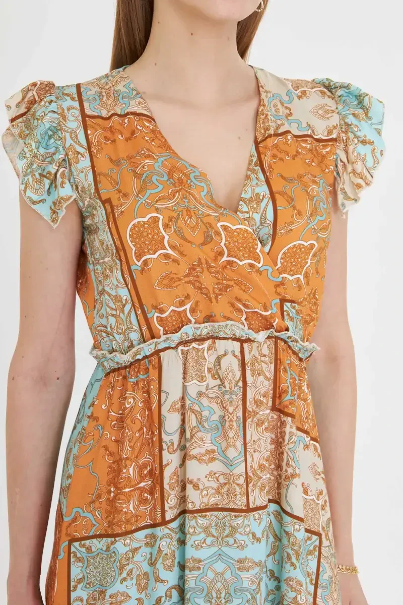 Вискоза, Прямой, Запах, Короткий рукав, Повседневный, Кэжуал, Тканый, Стандартный крой, Вискозная ткань, Женская одежда