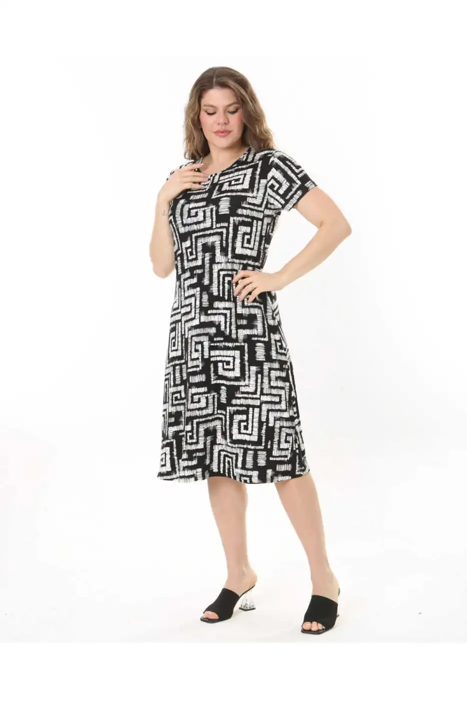 Это платье миди, разработанное для женщин, которые ищут стиль и комфорт одновременно, позволит вам выглядеть стильно в повседневной жизни. Круглый вырез придает платью современный вид, а узоры придают ему очаровательную элегантность. Короткие рукава обеспечат вам прохладу и комфорт в летние месяцы, а длина миди разработана так, чтобы подходить каждому типу телосложения. Благодаря наличию размеров plus size вы сможете найти идеальный размер для любого размера.