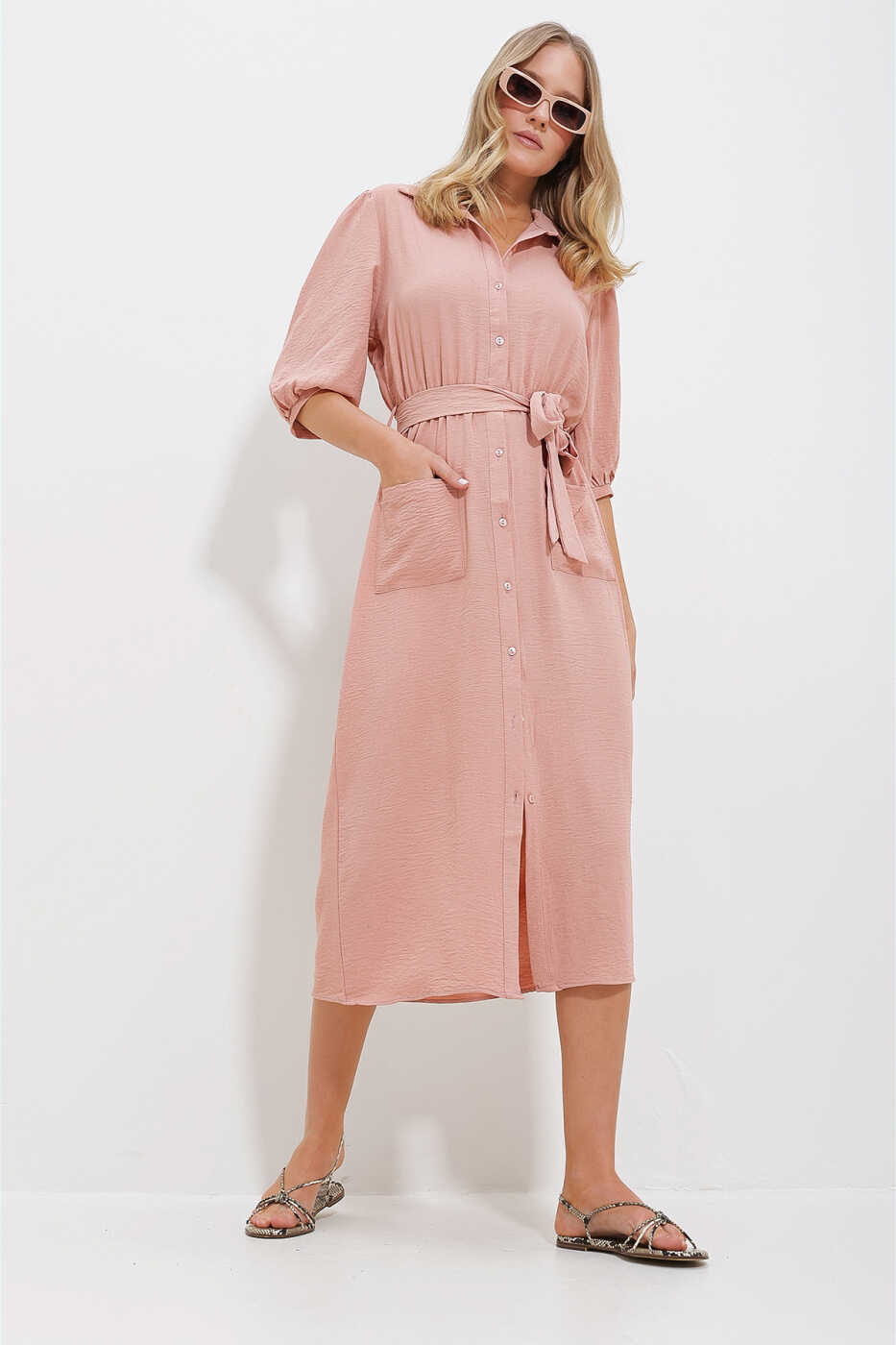 Сочетая стиль и комфорт, женское платье-рубашка с двойным карманом и рукавами-арбузом ALC-X11647 позволит вам выглядеть стильно и уверенно в любое время! Легкая и дышащая ткань обеспечивает комфорт в течение всего дня. Рукава-арбуз добавляют женственности, а два кармана делают ее еще более практичной. Пудровый цвет подходит к любому тону кожи, создавая стильный образ. Носите это платье на каждый день или на специальные мероприятия, оно подарит вам потрясающий стиль.