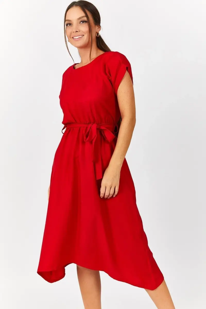 Женское платье с красным эластичным поясом и завязками ARM-18Y001120