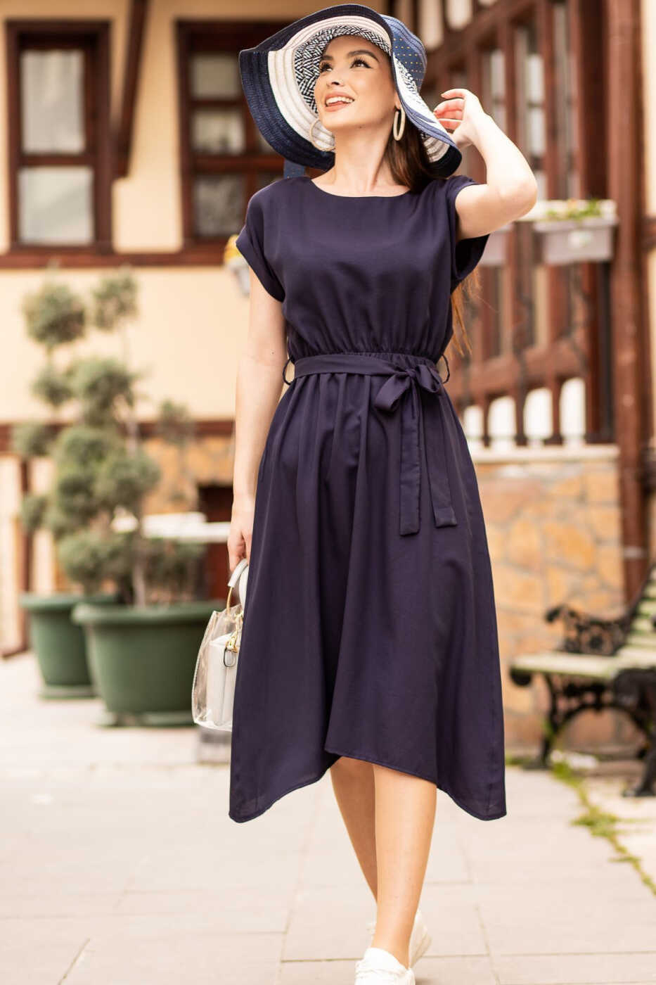 Выглядите потрясающе в любое время с этим платьем, которое сочетает в себе стиль и комфорт! Женское платье цвета индиго с эластичной талией и завязками идеально подходит для повседневной носки благодаря элегантному дизайну и удобному крою. Цвет индиго подойдет к любому тону кожи и сделает вас еще красивее. Эластичная талия и завязки идеально сядут по фигуре и придадут вам уверенный вид. Мягкая и дышащая ткань обеспечивает комфорт в течение всего дня. Вы можете легко выбрать это платье для повседневной жизни, особых случаев или делового стиля. Если вы ищете стиль и комфорт одновременно, Женское платье цвета индиго с эластичной талией и завязками - это то, что вам нужно!